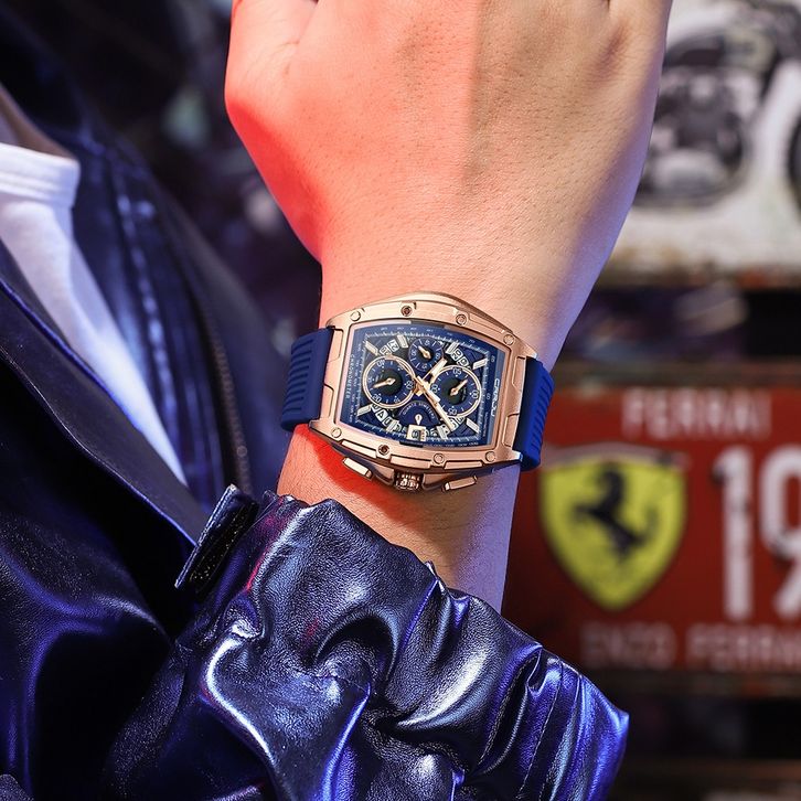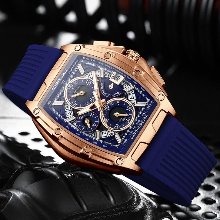 CRRJU Jam Tangan Pria Militer Kuarsa Olahraga Chronograph Kasual Tali Silikon Tahan Air Bercahaya