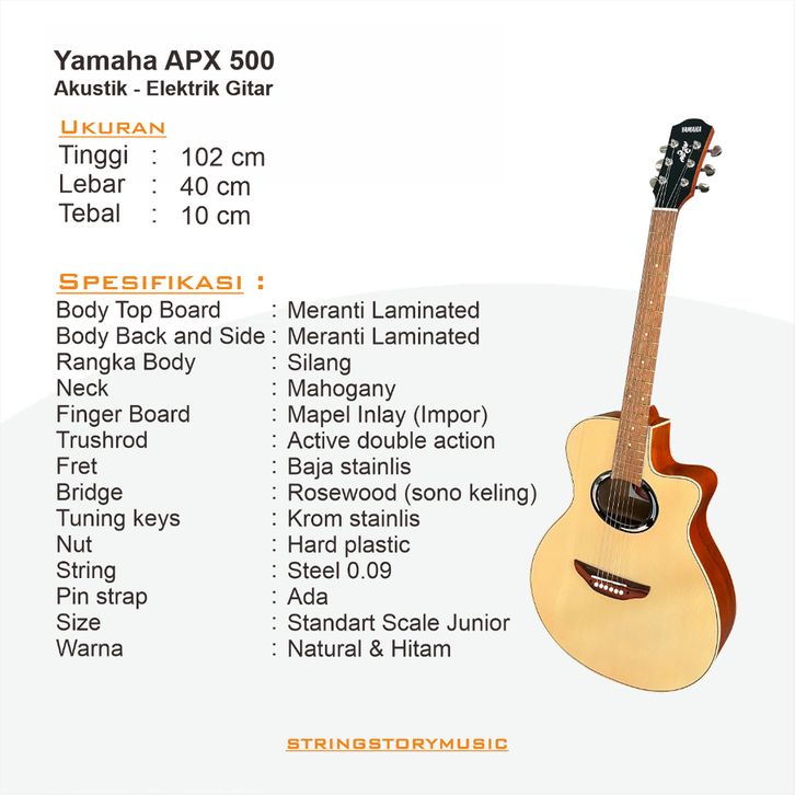 Gitar Elektrik Yamaha APX 500ii Equaliser 7545R Dan Bonus Packing Kayu
