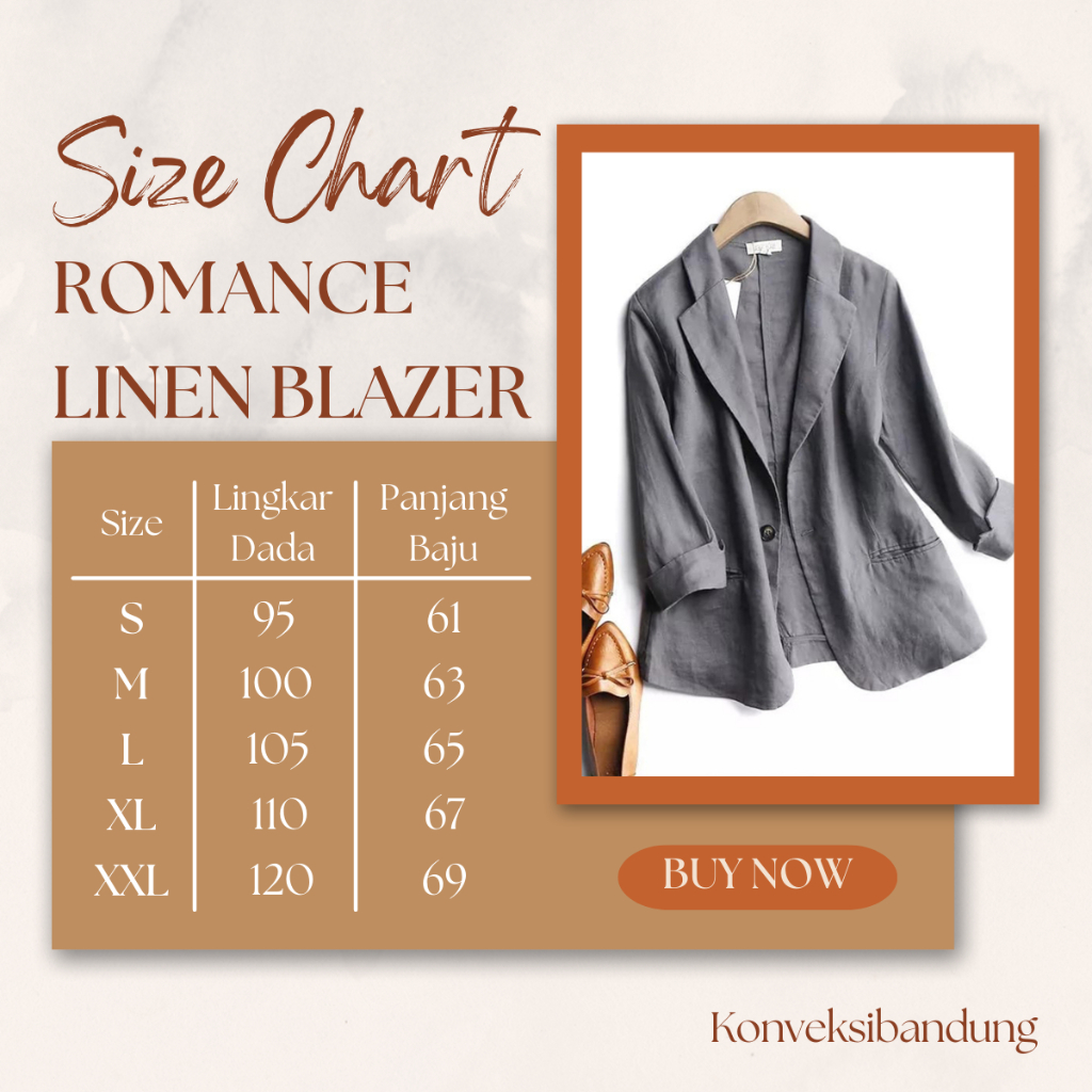 KONVEKSIBANDUNG - ROMANCE BLAZER LINEN KOREAN STYLE WANITA CASUAL MODIS KEKINIAN UKURAN S M L XL XXL