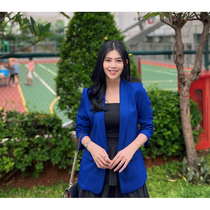 CHLOEBEAUTYSHOP - BLAZER BLANIK WANITA KERAH LURUS L / XL / BLAZER VIRAL TANGAN PANJANG