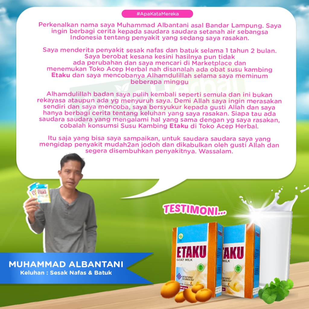 Etaku Susu Kambing Atasi ISPA Batuk Sesak Napas Pneumonia Bronkitis TBC Radang Paru Paru Sakit Dada Badan Lemas Demam Radang Tenggorokan