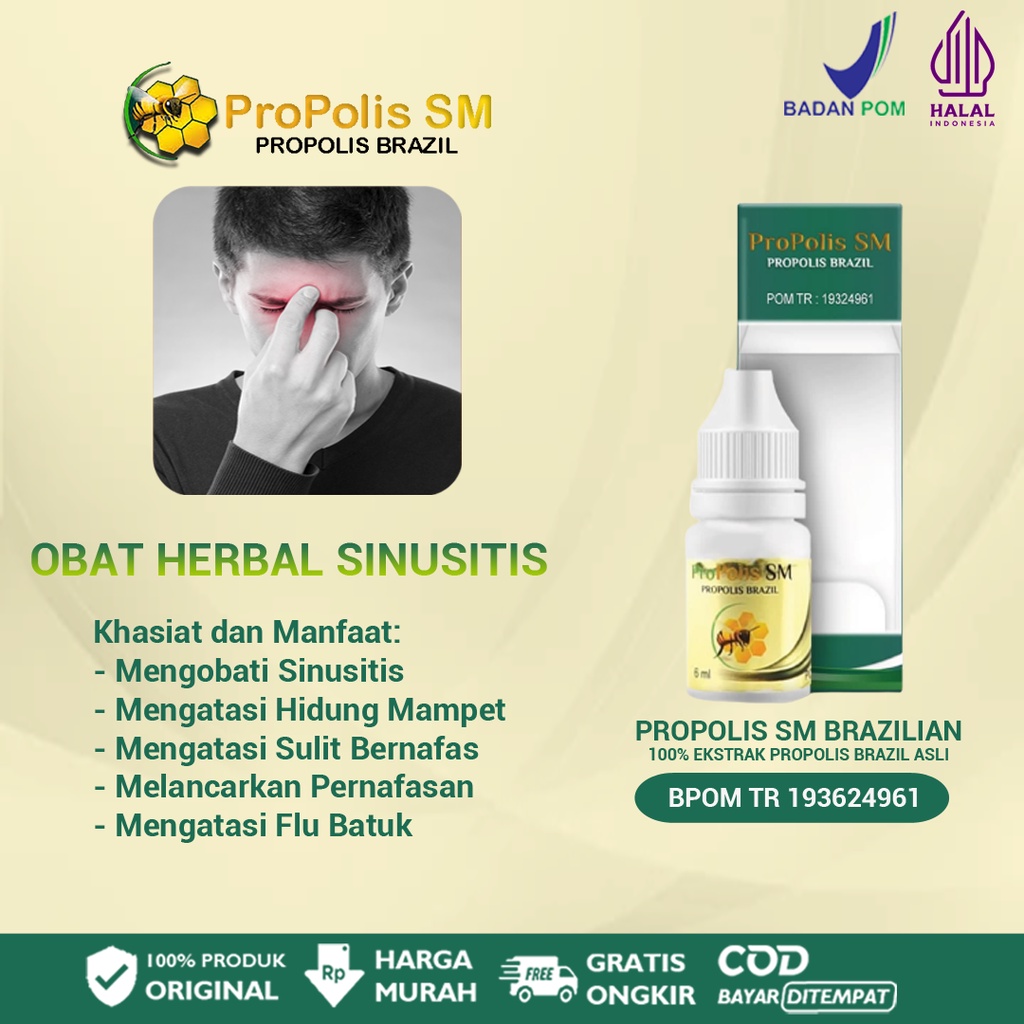 Propolis SM Brazilian - Obat Sinusitis Hidung Mampet Rinitis Sulit Bernafas Gatal Karena Kotoran Sesak Nafas asma TBC mengatasi Flu Batuk