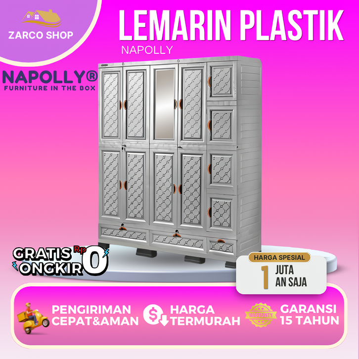 LEMARI PLASTIK NAPOLLY 5 PINTU BERKUALITAS 2024 JUMBO 4 SUSUN MINIMALIS MODERN PAKAIAN OLYMPLAST CLUB 2025 GARANSI RESMI
