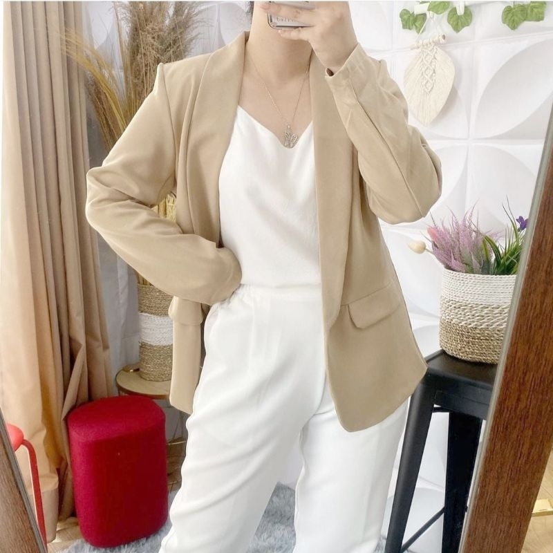 BLADIES BLAZER KERAH LURUS TANGAN PERTAMA LENGAN PANJANG WANITA PREMIUM PABRIC