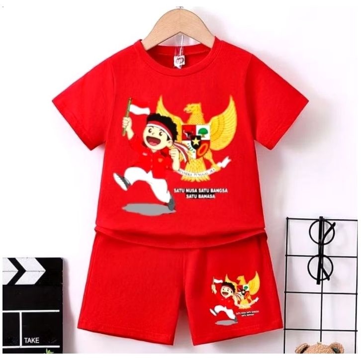 Setelan anak laki-laki/perempuan motif 17 Agustus/kemerdekaan 2-9 tahun