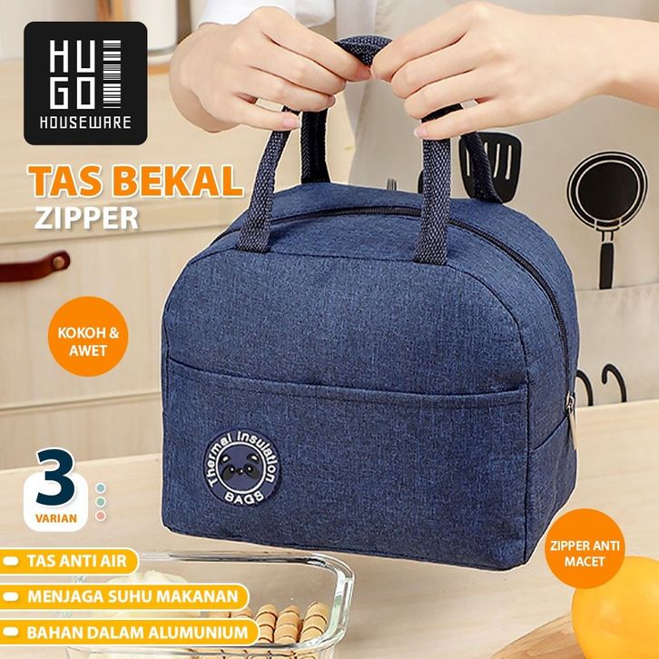 HUGO Tas Bekal Makanan Anak Tas Penyimpanan Kotak Makan Lunchbag Thermal Cooler Tahan Panas Polos