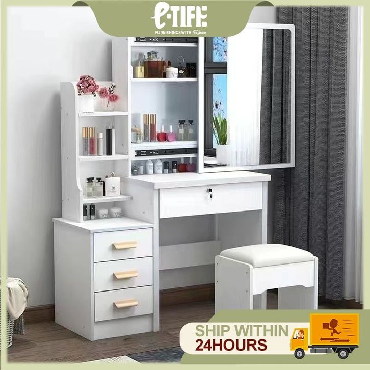etife Meja Rias Minimalis Estetik+Kursi Meja Rias /Meja Rias Kaca Sliding Minimalis / Meja Kosmetik