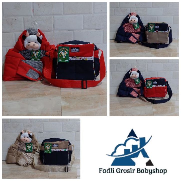 Paket Hemat (2 in 1) Tas Bayi Polka Dan Gendongan Bayi Samping Kerut Topi Boneka Sapi