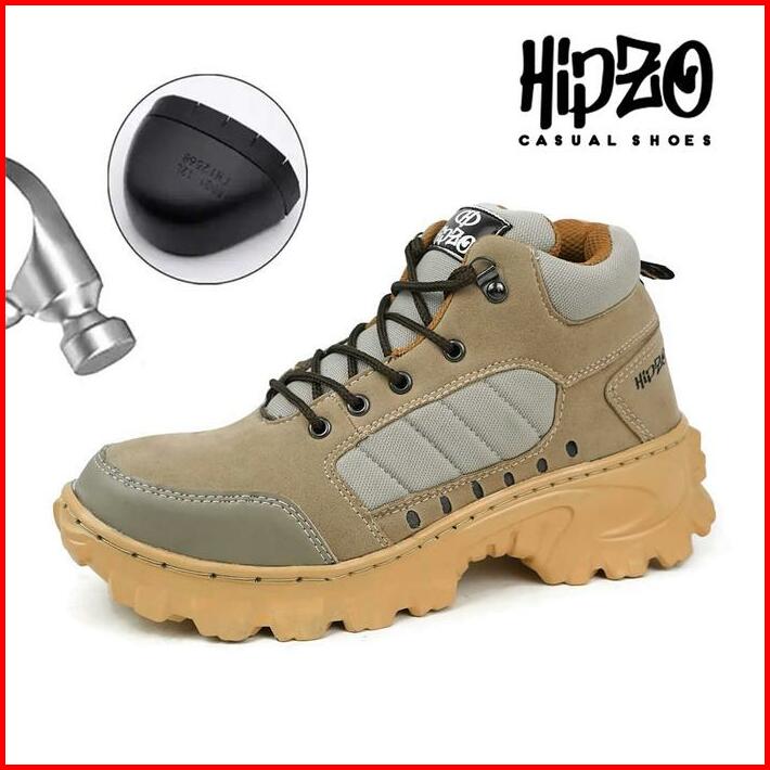 Hipzo Sepatu Safety Boots Tinggi M079 Untuk Unisex Ujung Besi Kerja Proyek Lapangan Shoes Pria