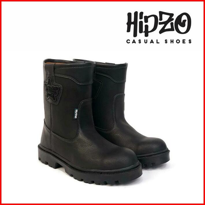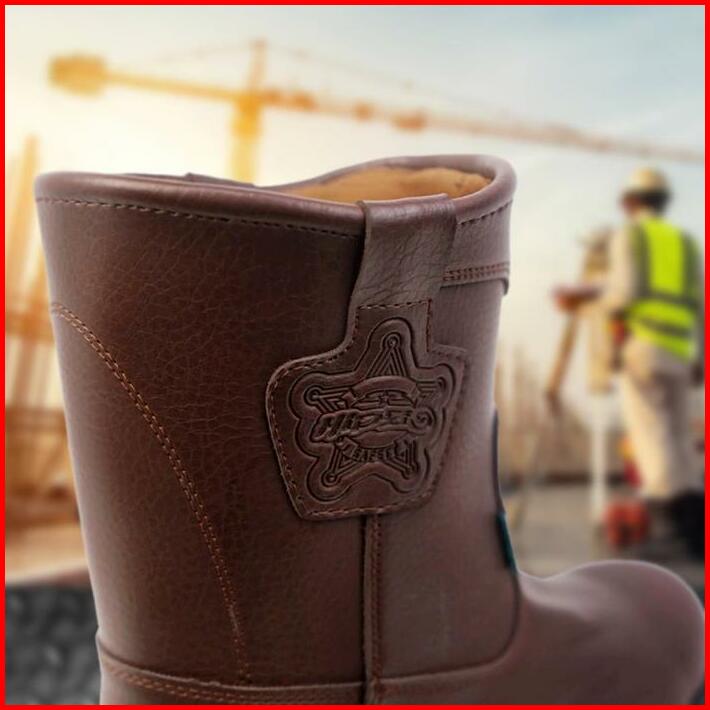 Hipzo Sepatu Safety Mo56 Ujung Besi Boots Tinggi Kulit Sintetis Premium Untuk Pria Shoes Kerja Hitam