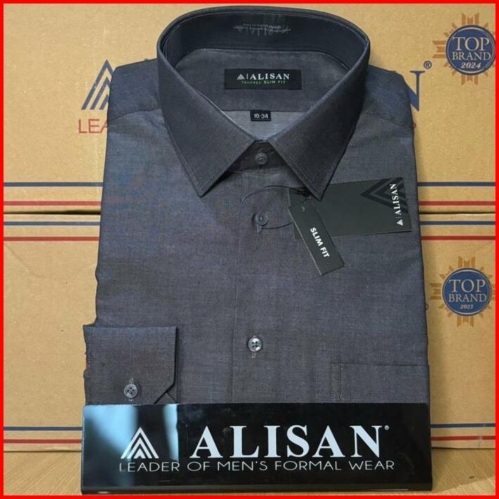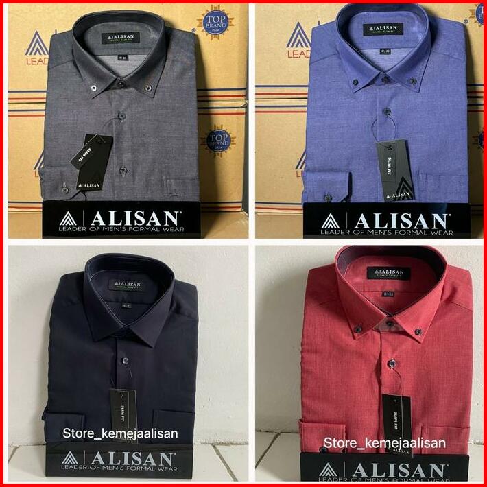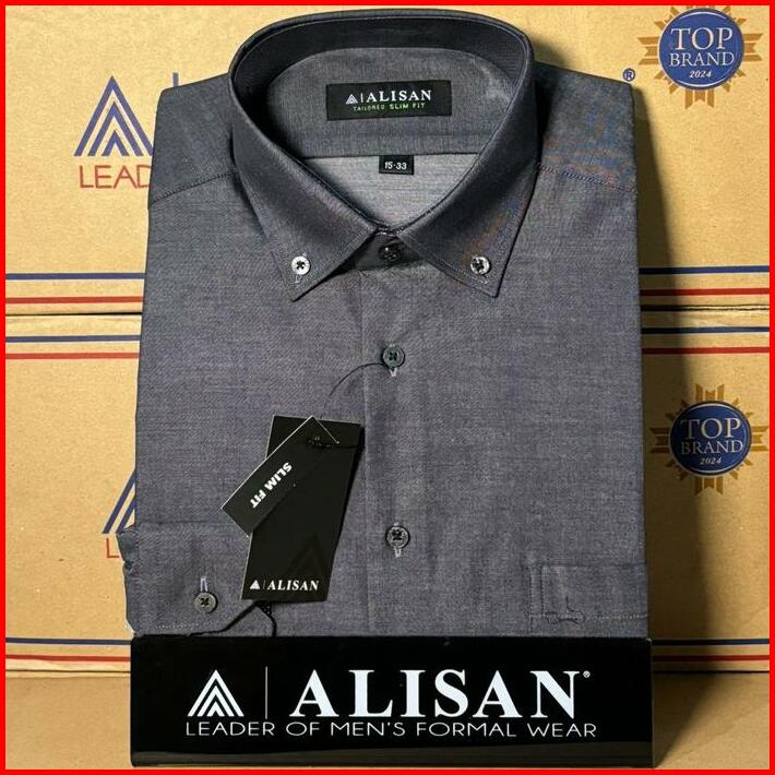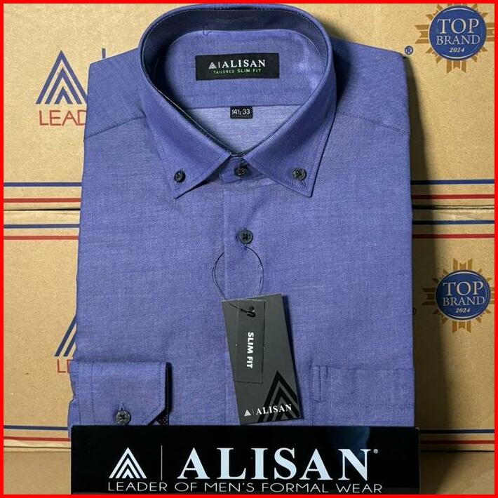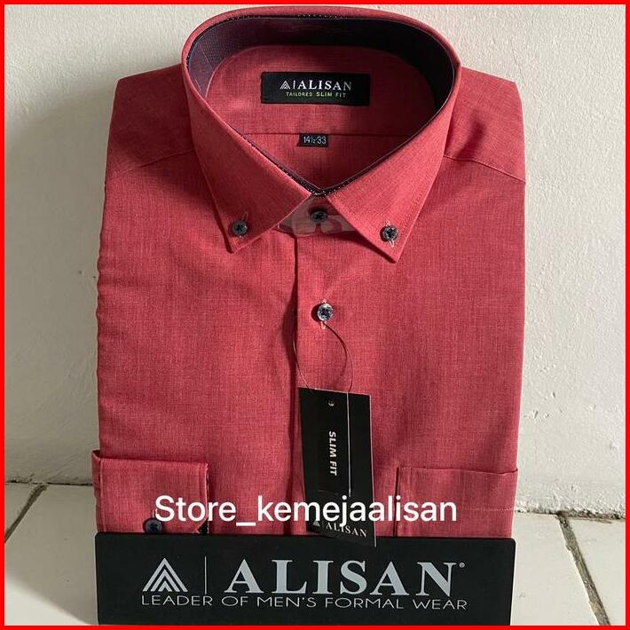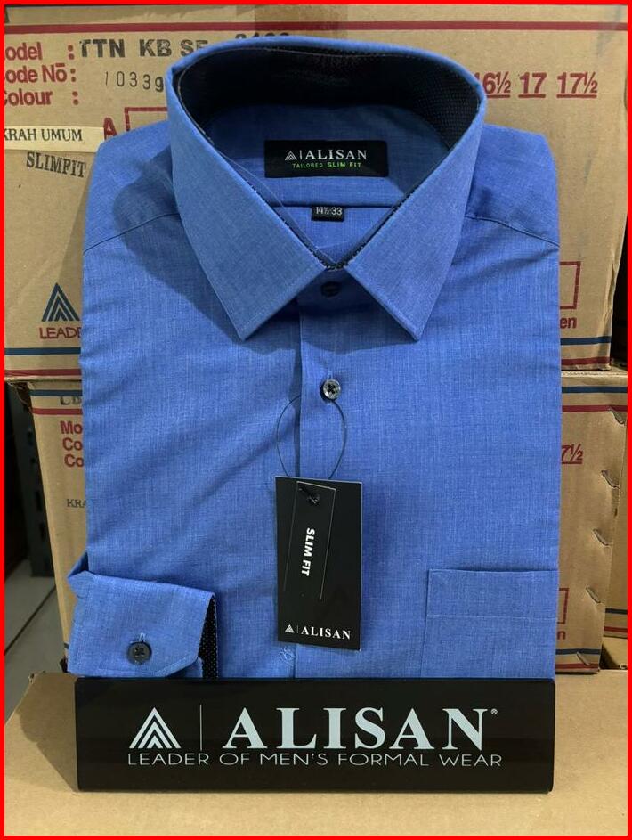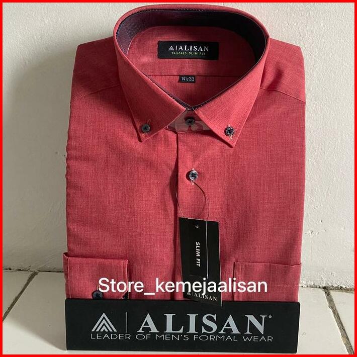 Kemeja Alisan Ttn Slimfit Lengan Panjang Warna Denim Abu Merah