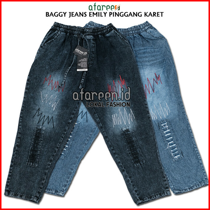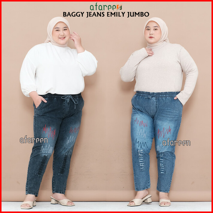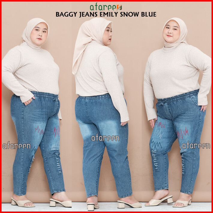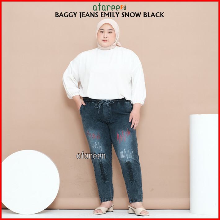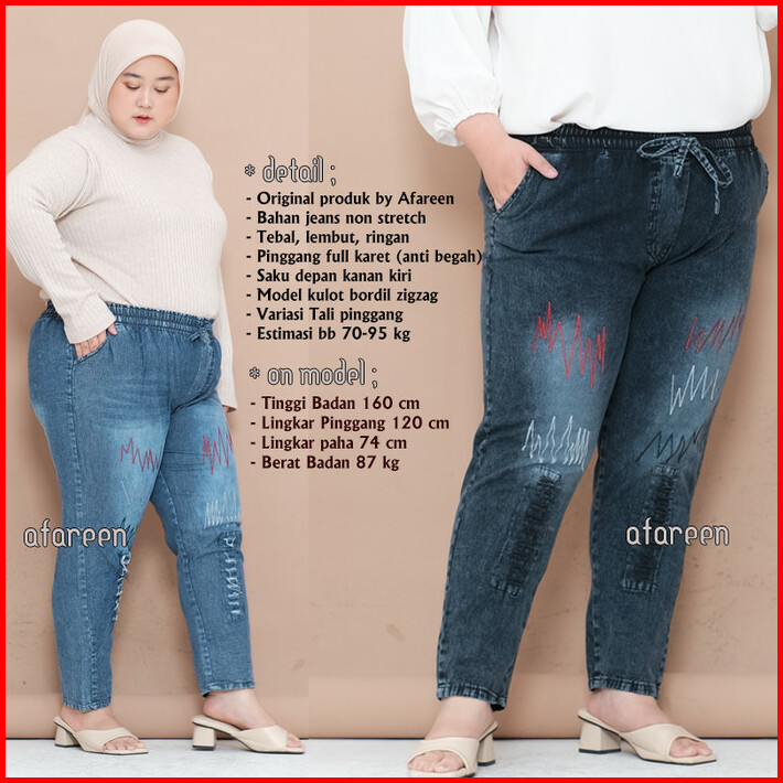 Celana Kulot Jeans Wanita Boyfriend Pinggang Kolor Karet Big Size