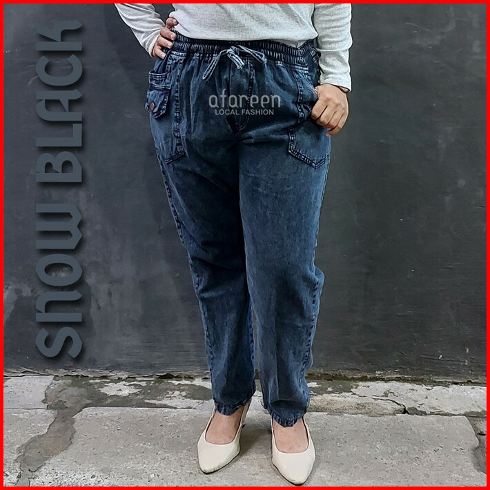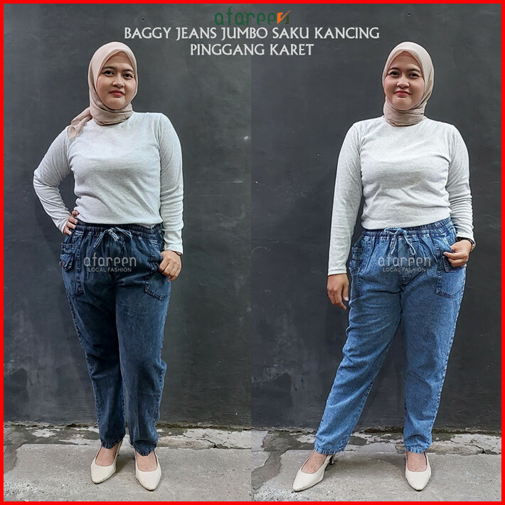 Kulot Jeans Wanita Jumbo Celana Baggy Jeans Kulot Pinggang Karet Denim