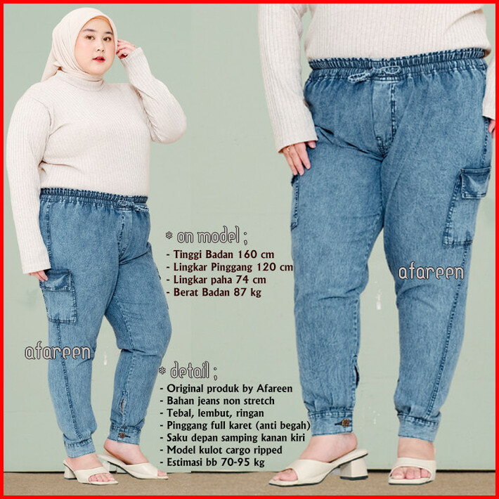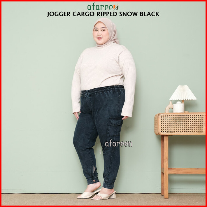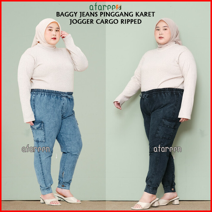 Celana Jogger Jeans Wanita Kulot Jeans Jogger Ripped Denim Jumbo