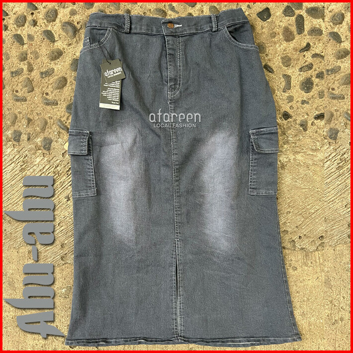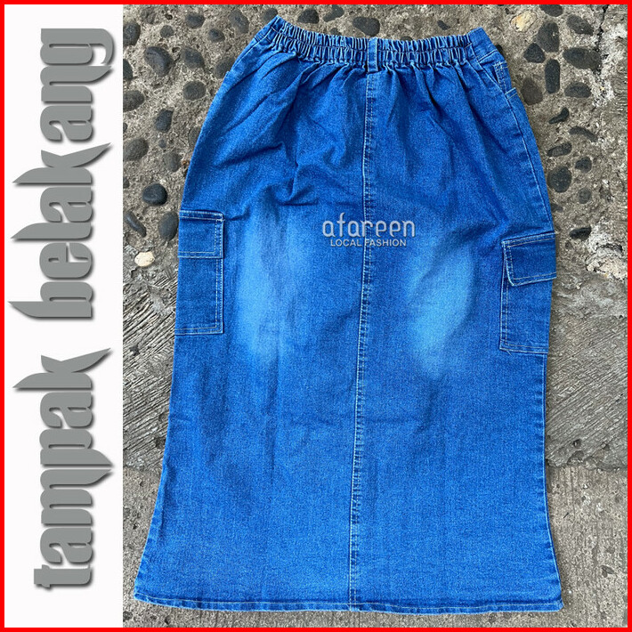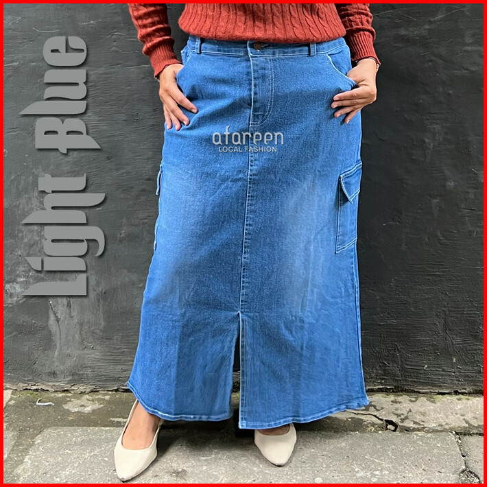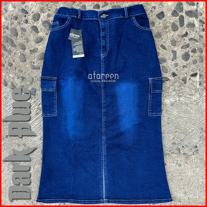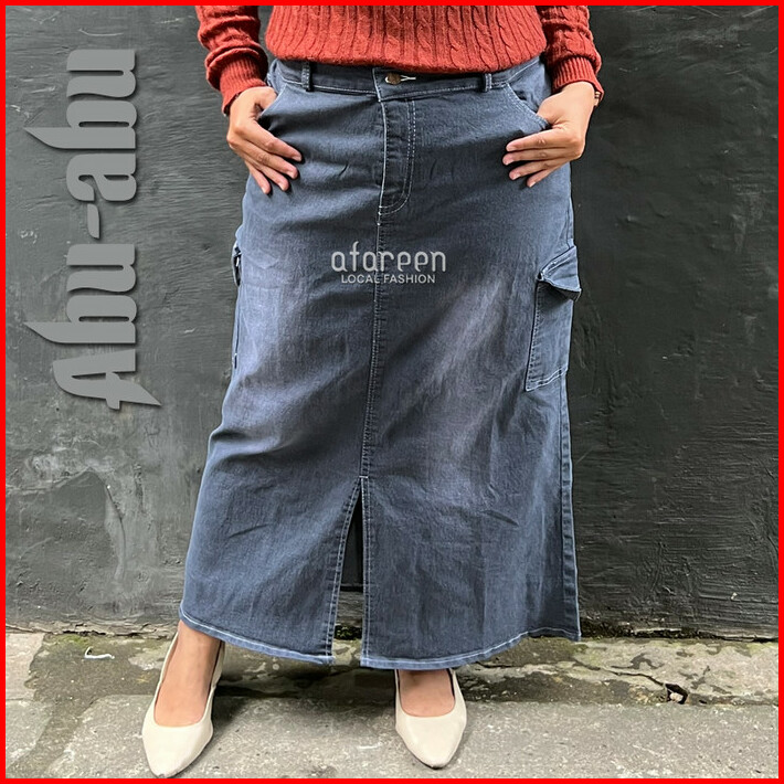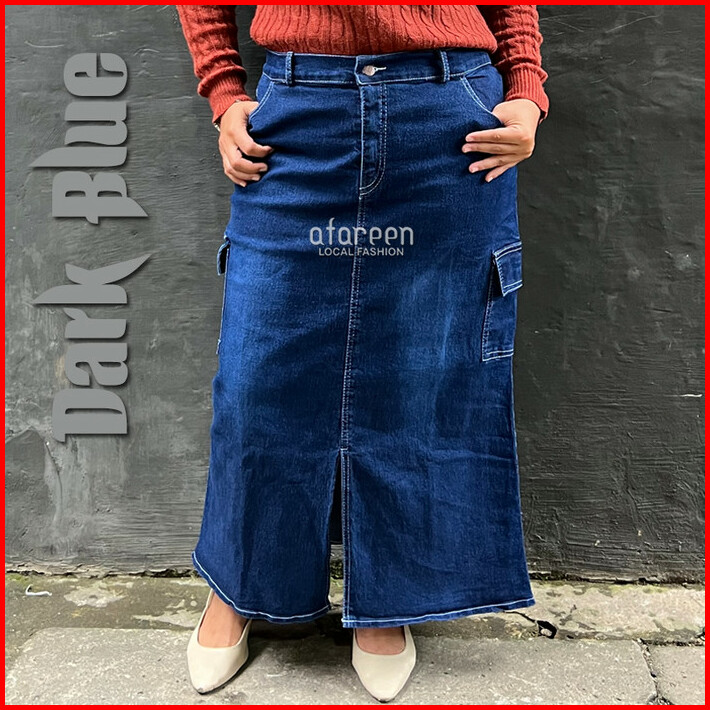 Rok Cargo Jeans Panjang Highwaist Jeans Skirt Wanita Jumbo