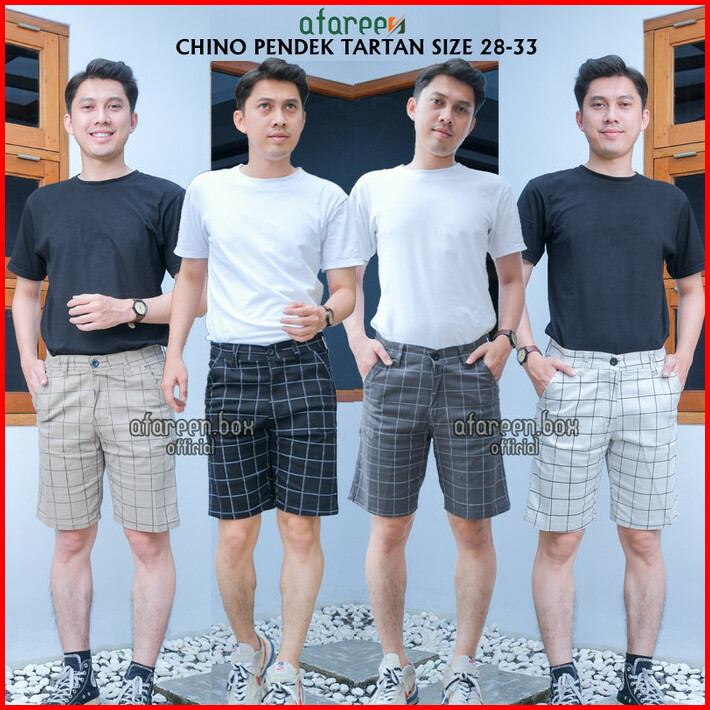 Celana Chino Pendek Pria Motif Kotak-kotak Celana Tartan Pria Pendek
