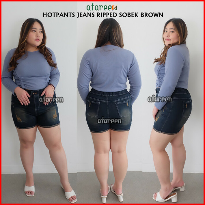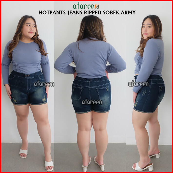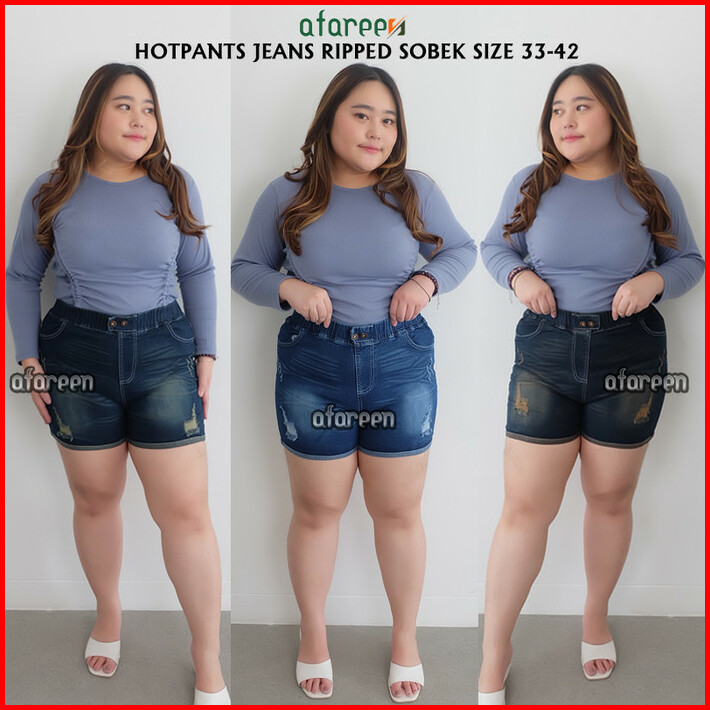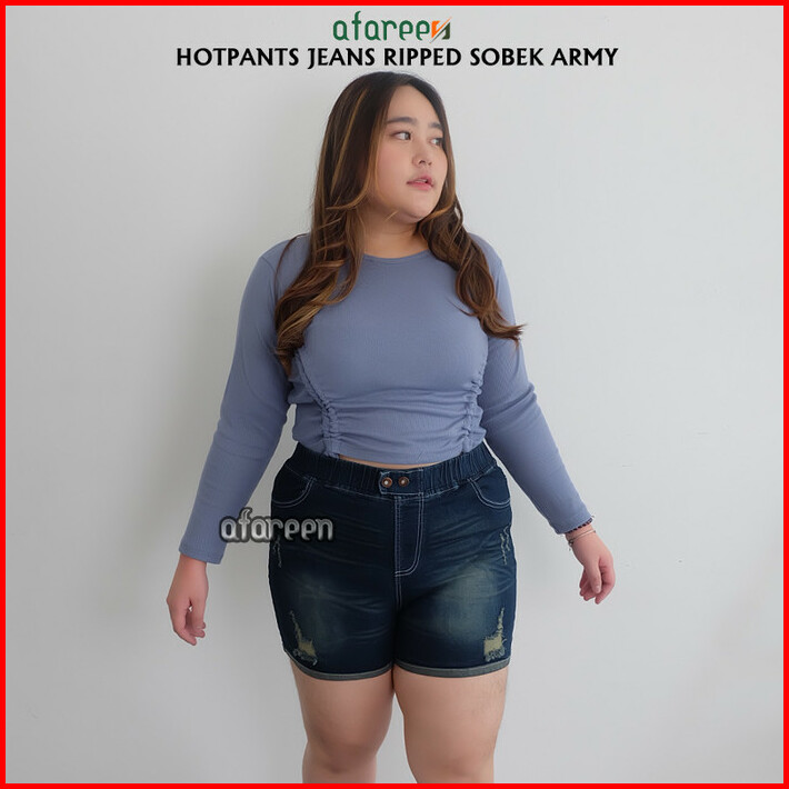 Celana Jeans Pendek Wanita Jumbo Hotpants Jeans Ripped Melar Stretch
