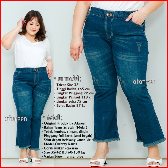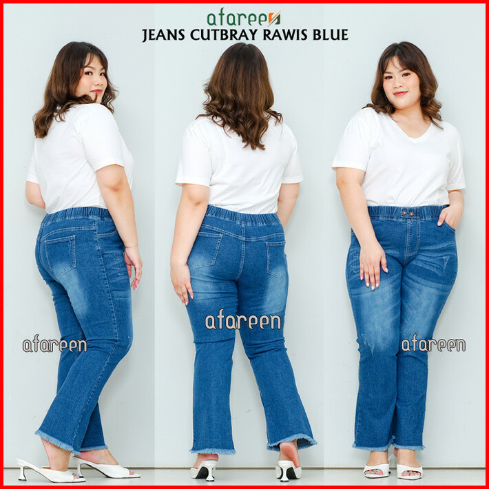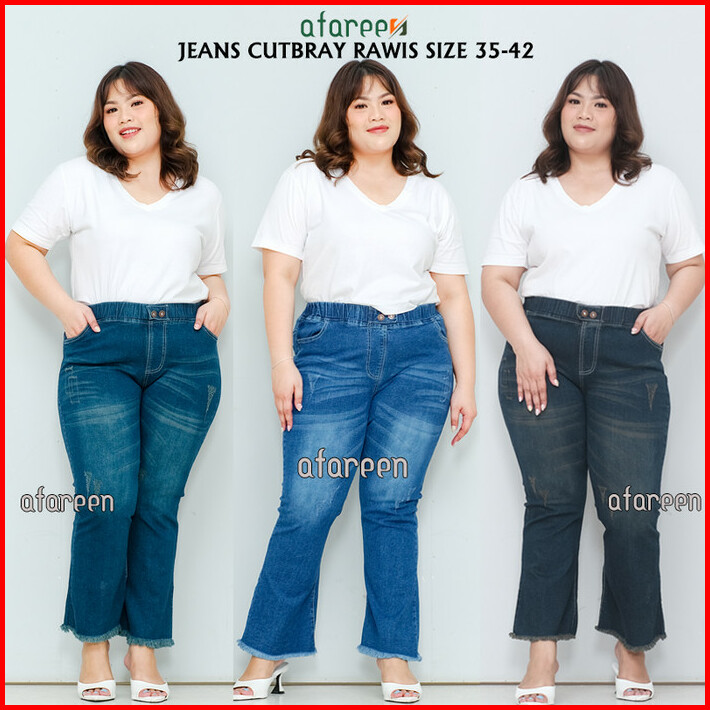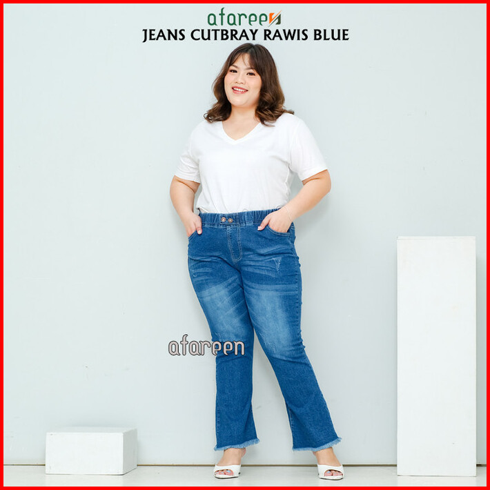 Celana Jeans Cutbray Wanita Jumbo Celana Panjang Jeans Stretch Bigsize