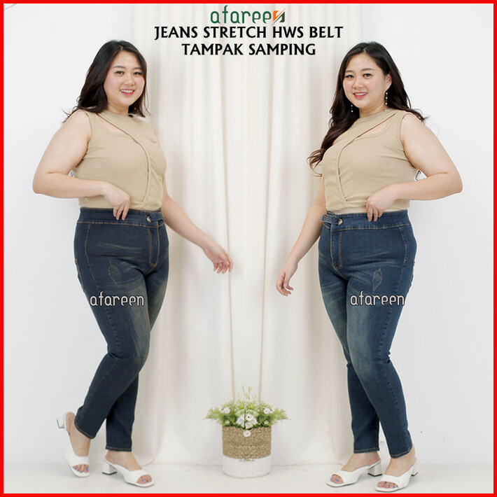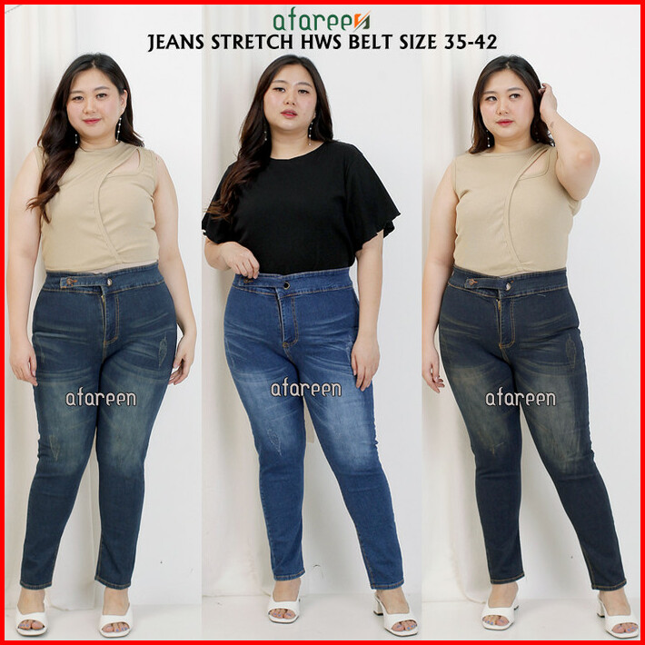 Celana Jeans Highwaist Wanita Super Jumbo Jeans Stretch Big Size