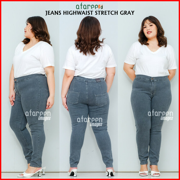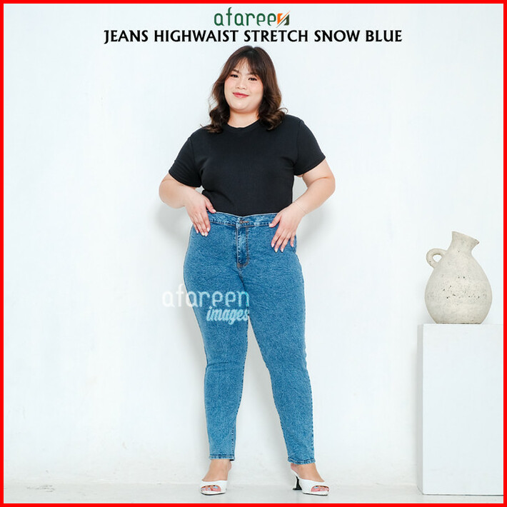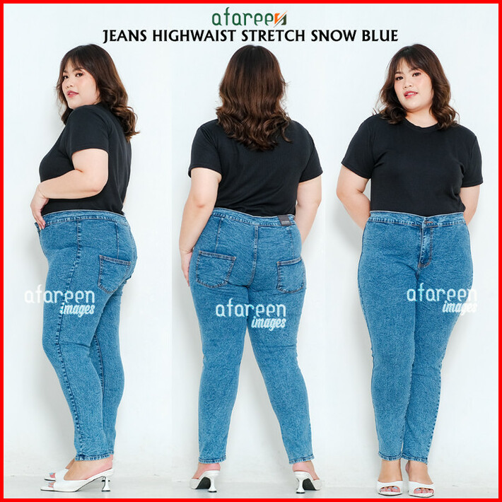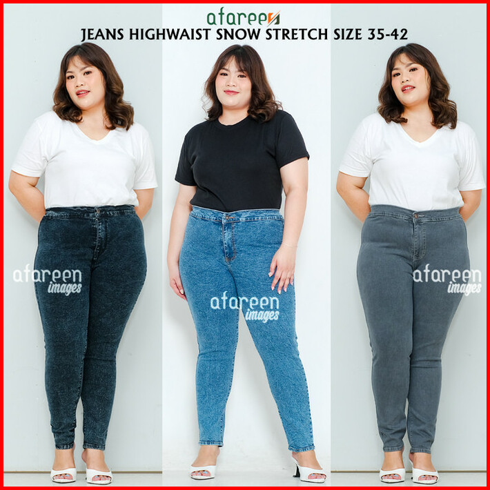 Celana Jeans Highwaist Wanita Jumbo Skinny Jeans Stretch Snow Big Size