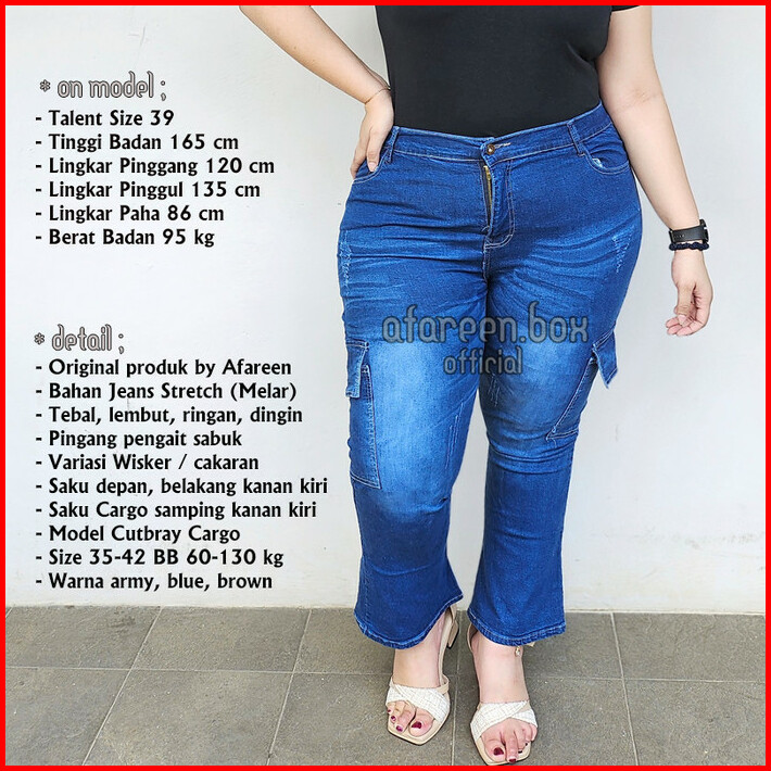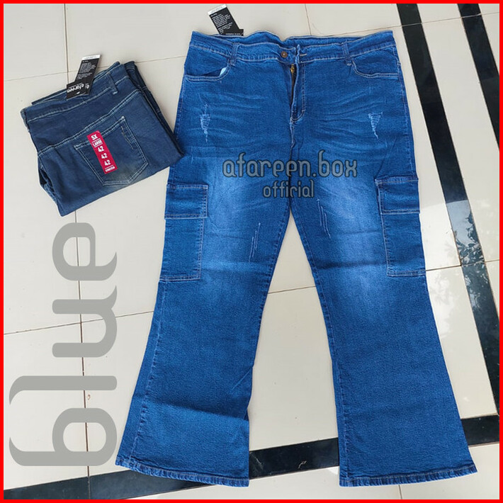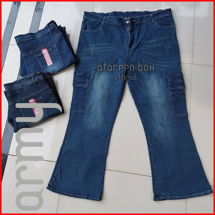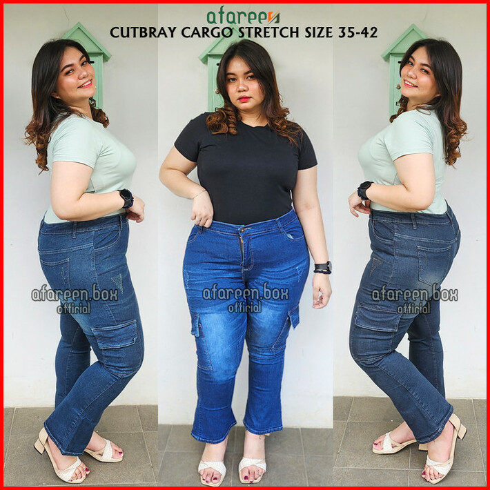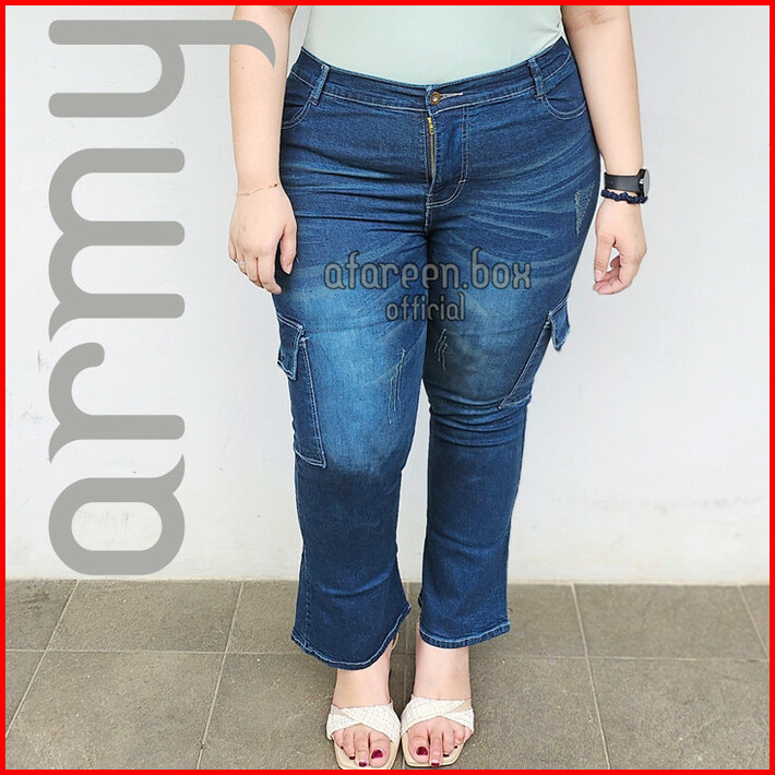 Celana Jeans Cutbray Wanita Jumbo Jeans Cutbray Cargo Street Big Size