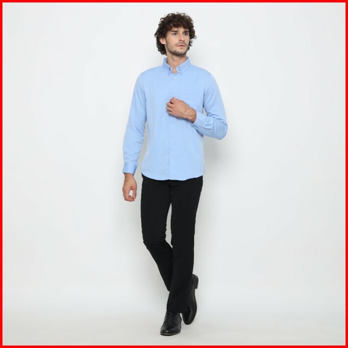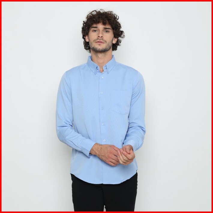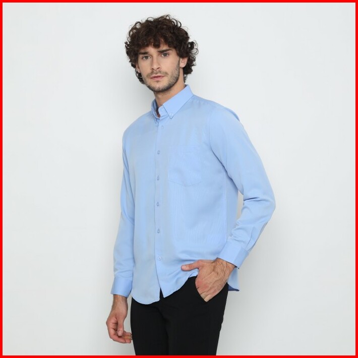 Platini Baju Kemeja Pria Lengan Panjang Polos Polinosic Biru 66124