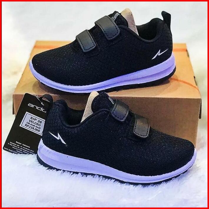 Sepatu Sekolah Sneakers Ando Rein Perekat Hitam Htm Sz 29-36 Terbaru Murah Meriah Berkualitas Fashion Anak