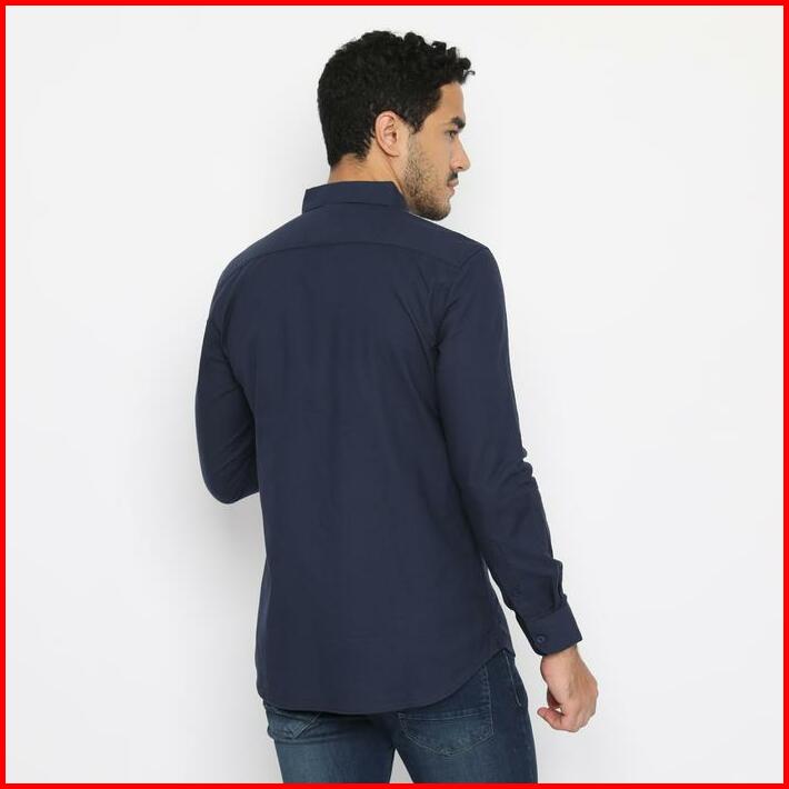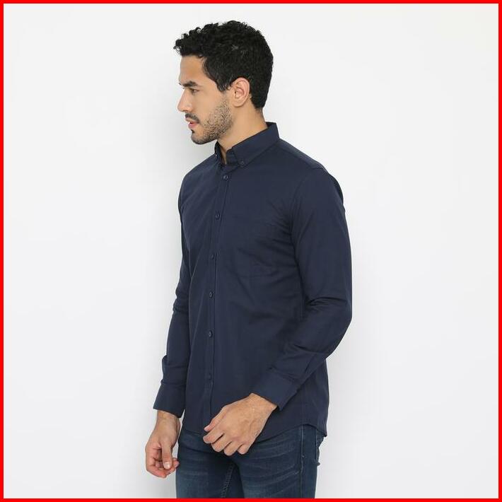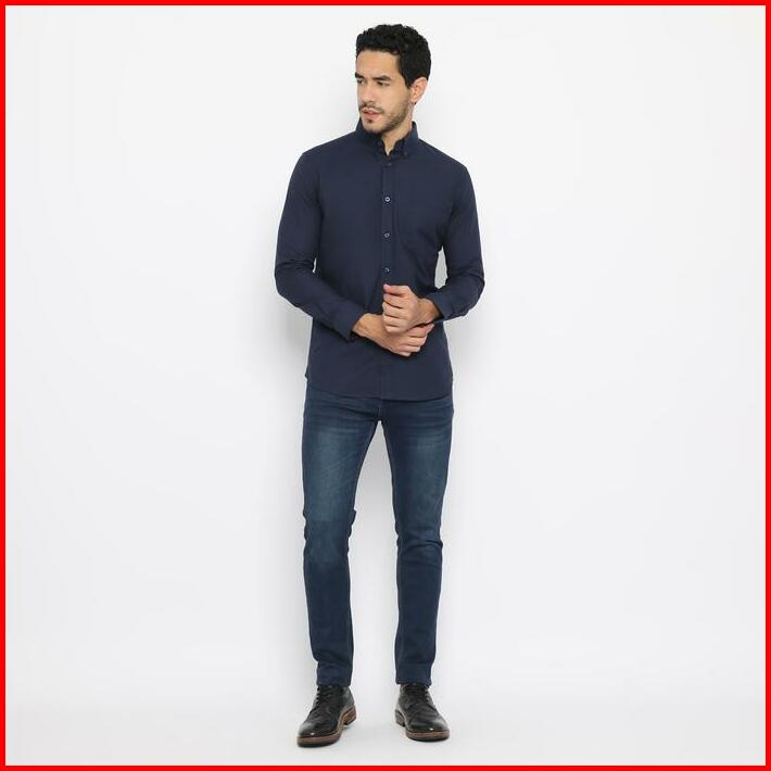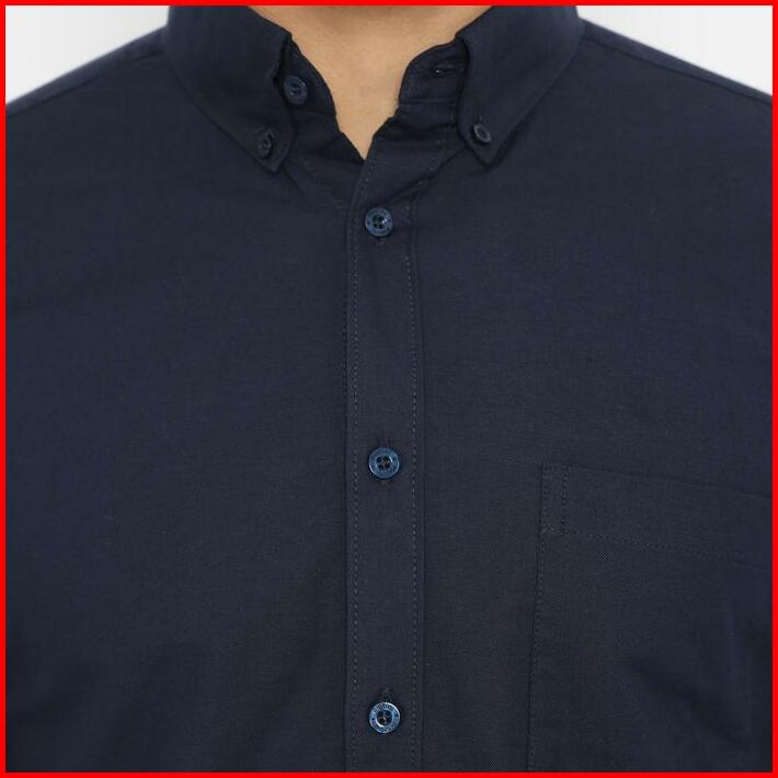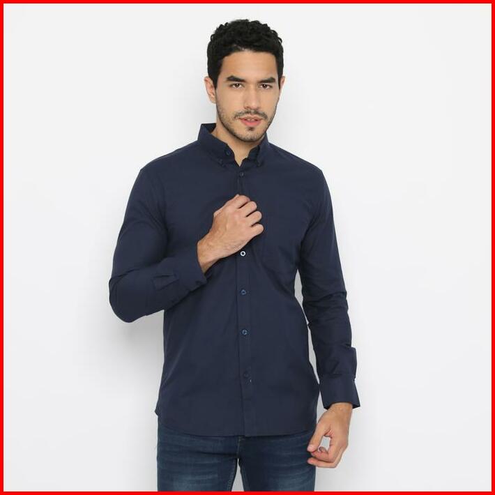 Platini Kemeja Pria Polos Lengan Panjang Katun Oxford Navy 66212