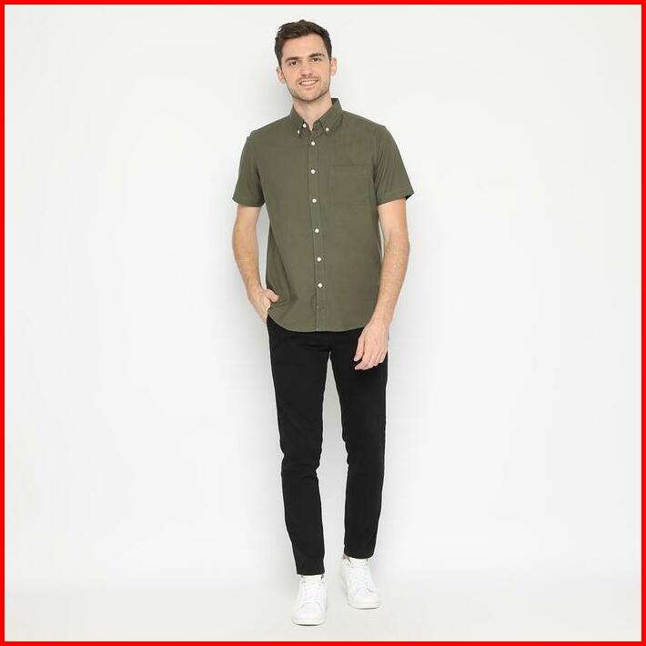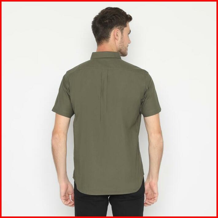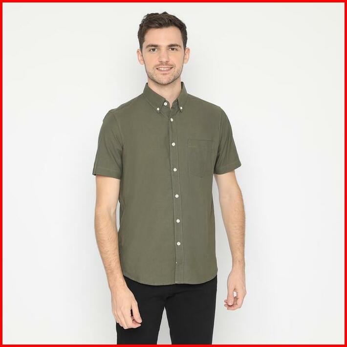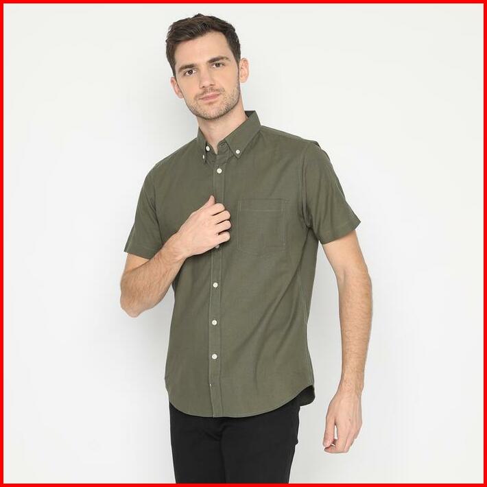 Platini Kemeja Pria Lengan Pendek Basic Katun Oxford Hijau Army 63210