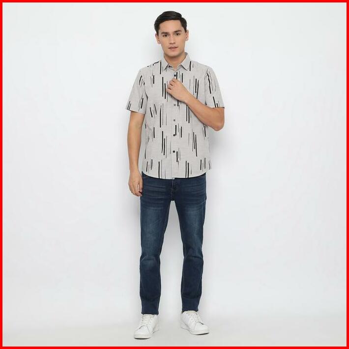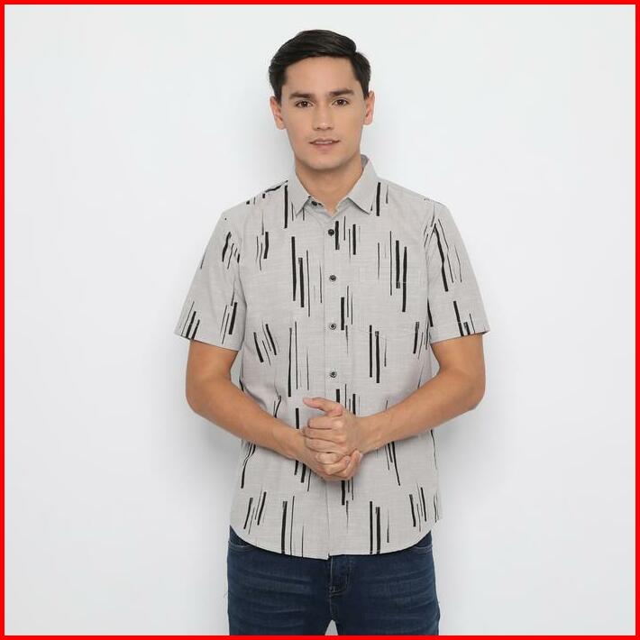 Platini Kemeja Motif Pria Lengan Pendek Abu 132157
