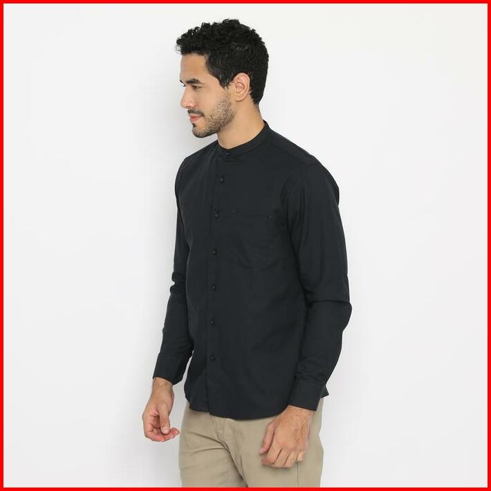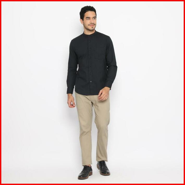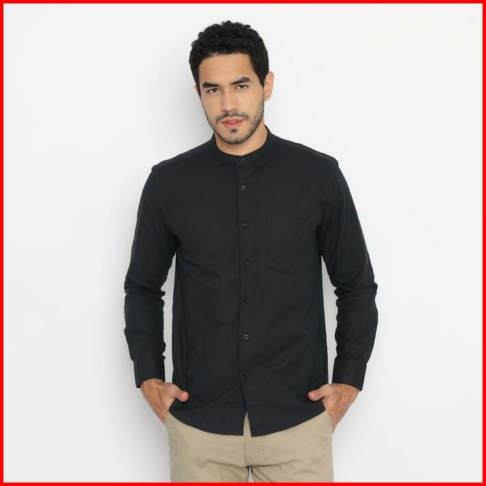 Platini Kemeja Pria Koko Shanghai Lengan Panjang Katun Oxford Hitam 22030