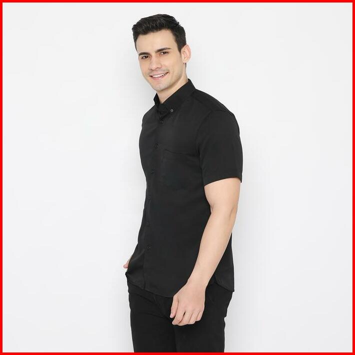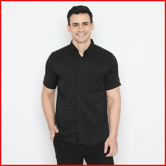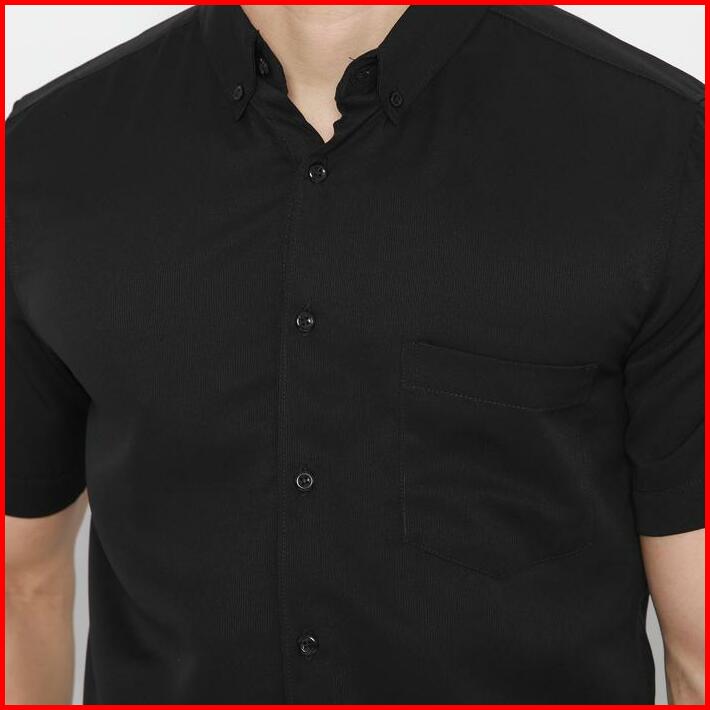 Platini Baju Kemeja Polos Basic Pria Pendek Polinosic Hitam 63100