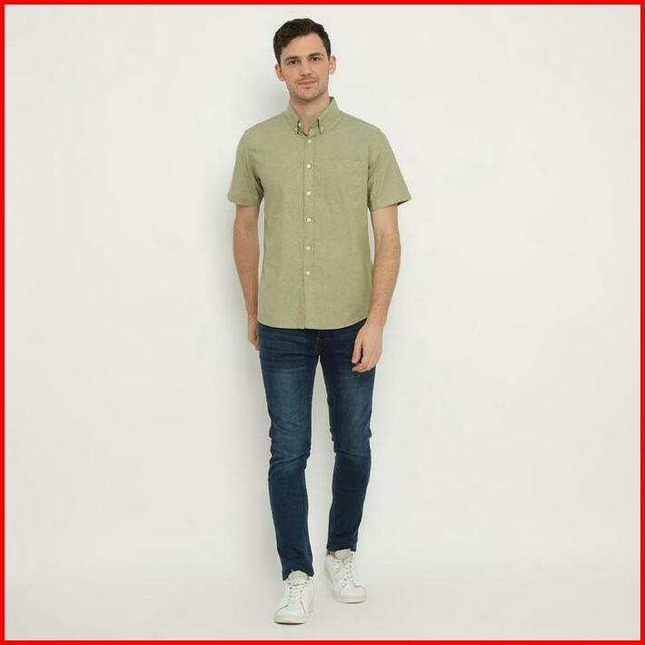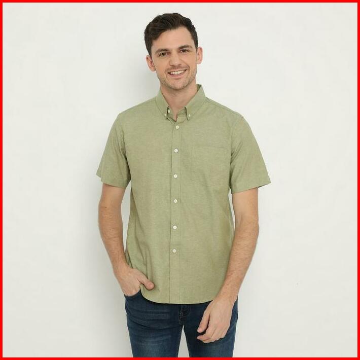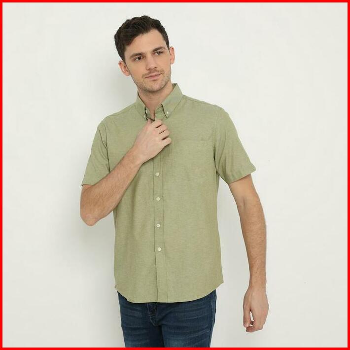 Platini Kemeja Pria Polos Oxford Pendek Hijau Lumut 1069