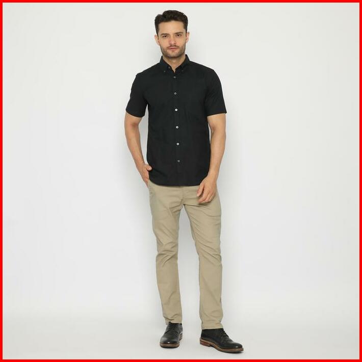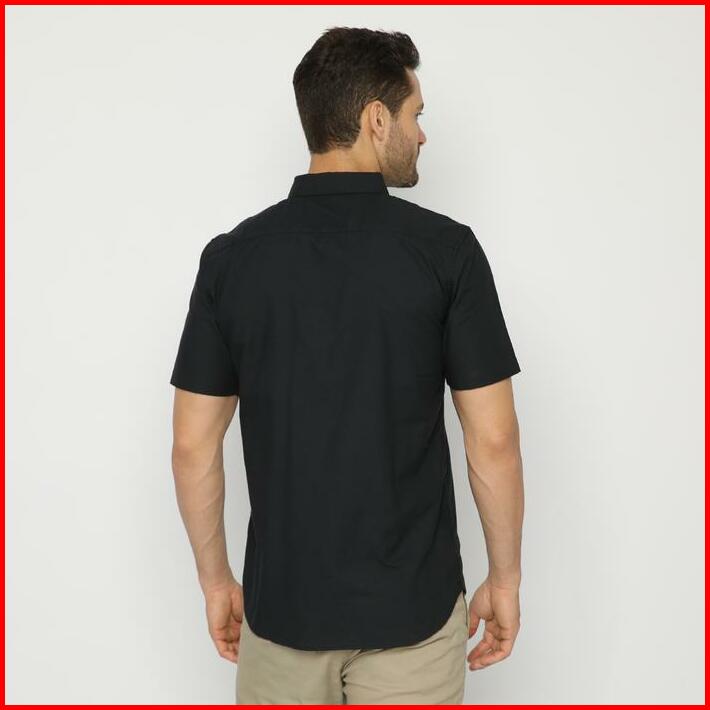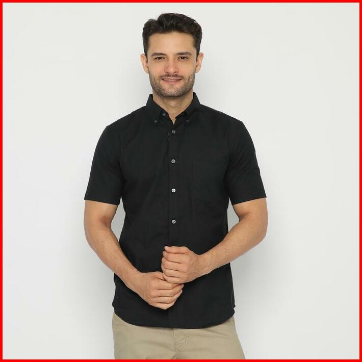 Platini Kemeja Hitam Pria Lengan Pendek Basic Katun Oxford 63206