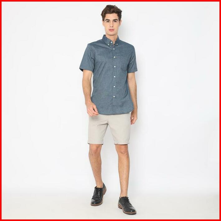 Platini Kemeja Pria Polos Lengan Pendek Katun Oxford Navy 1069
