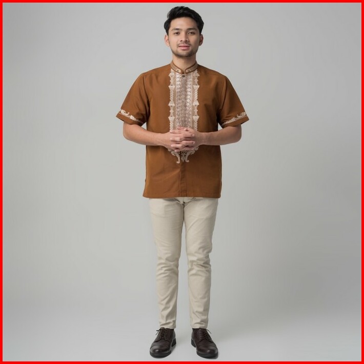 Benhill Taqwa Koko Bordir Pria Lengan Pendek Coklat 2344-46-12508