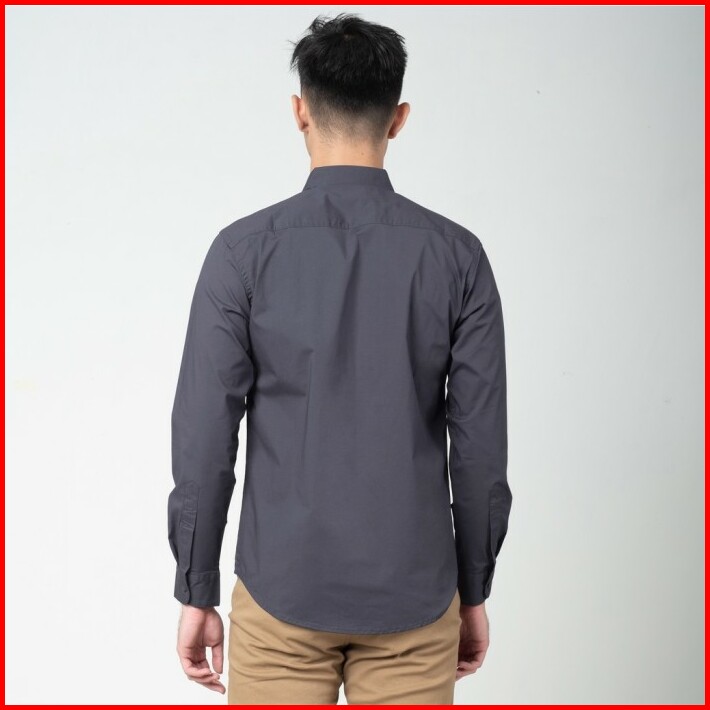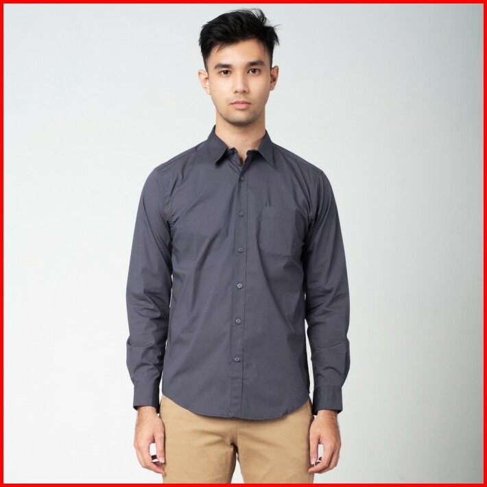 Benhill Kemeja Pria Basic Polos Lengan Panjang Katun Poplin Abu 45-166