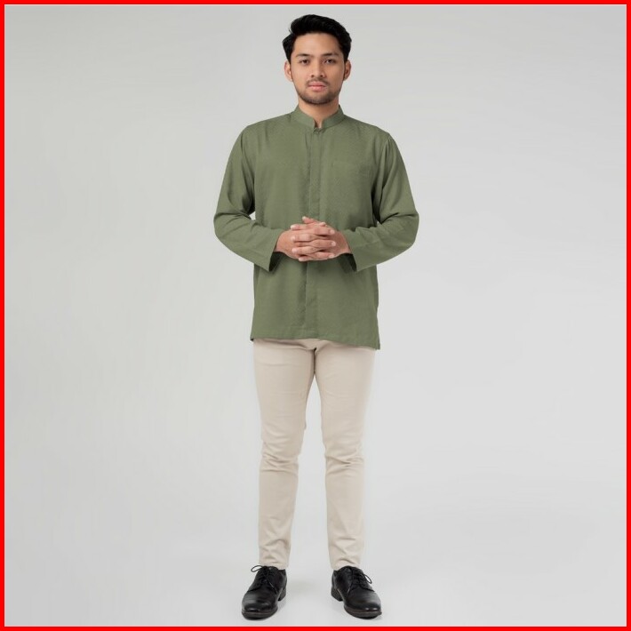 Benhill Kemeja Koko Pria Tenun Sultan Dobby Panjang Olive 29930-31-3