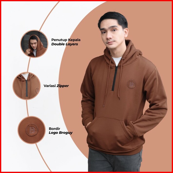 Broguy Jaket Hoodie Zipper Pria Wanita Unisex Size M-xxl Black