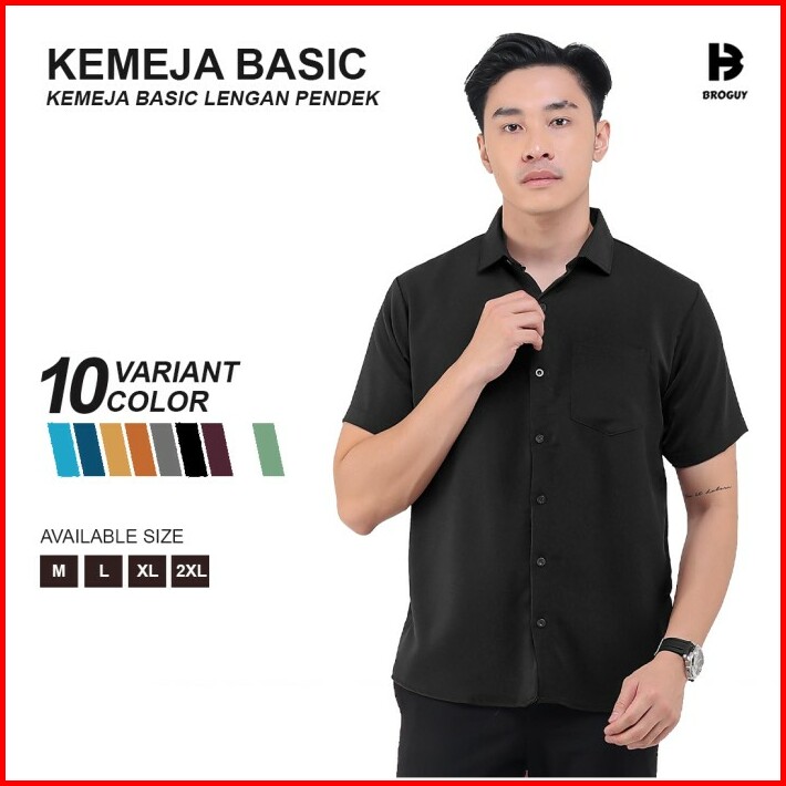 Broguy Kemeja Pria Lengan Pendek Formal Basic Black