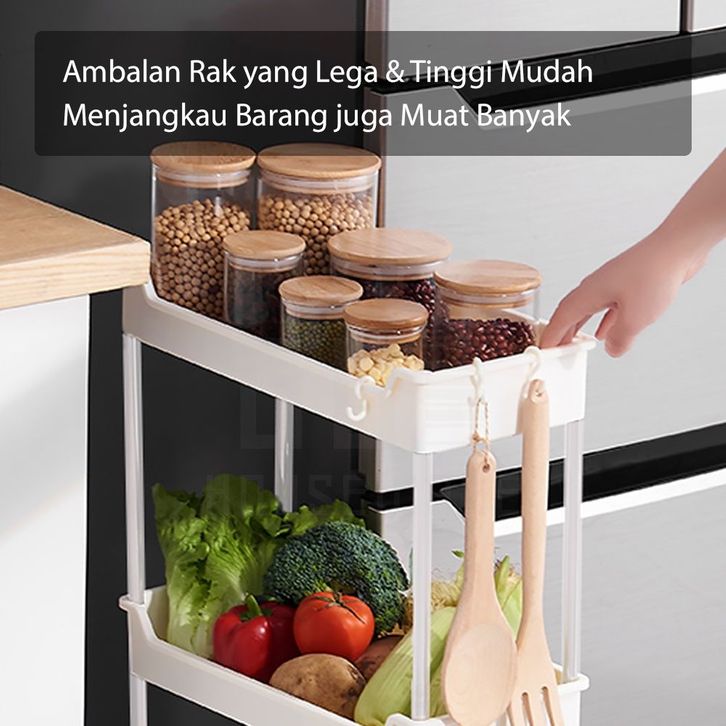 HUGO Rak Dapur Serbaguna Rak Troli Rak Kamar Mandi Rak Susun Plastik dengan Roda
