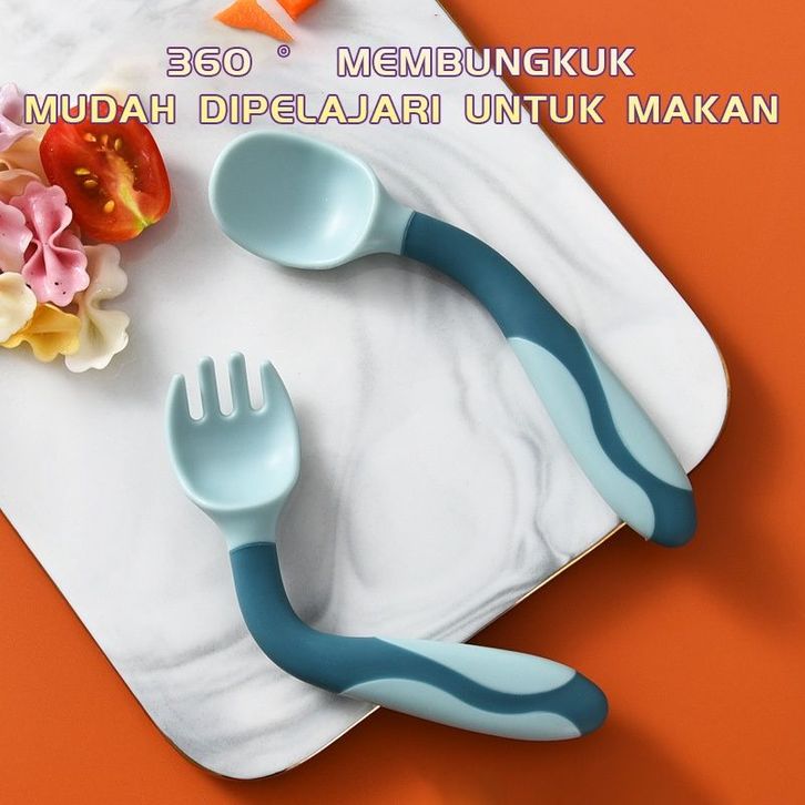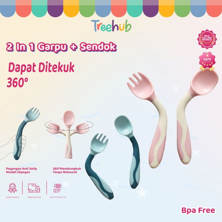 Treehub Set baby spoon Sendok + garpu bayi free box bisa melengkung flexible spoon