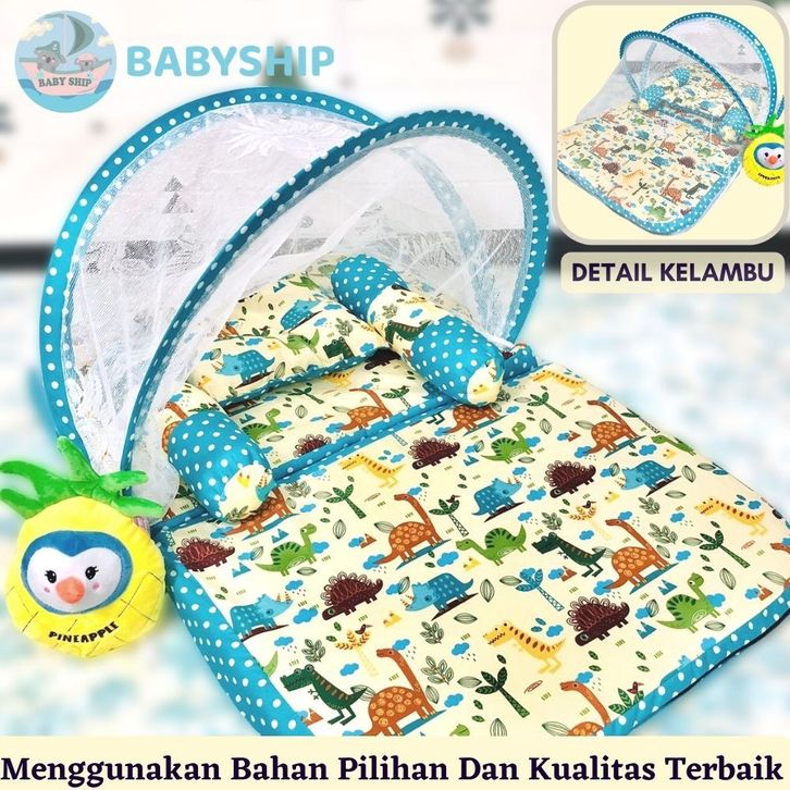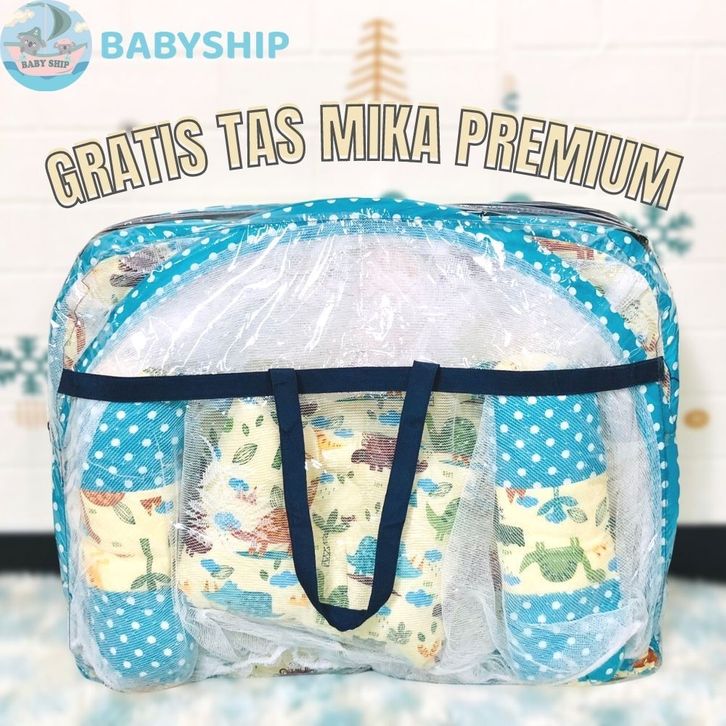 Kasur Bayi Kelambu Lipat / Tempat Tidur Bayi Lipat - Set Bantal Guling Free Tas Mika