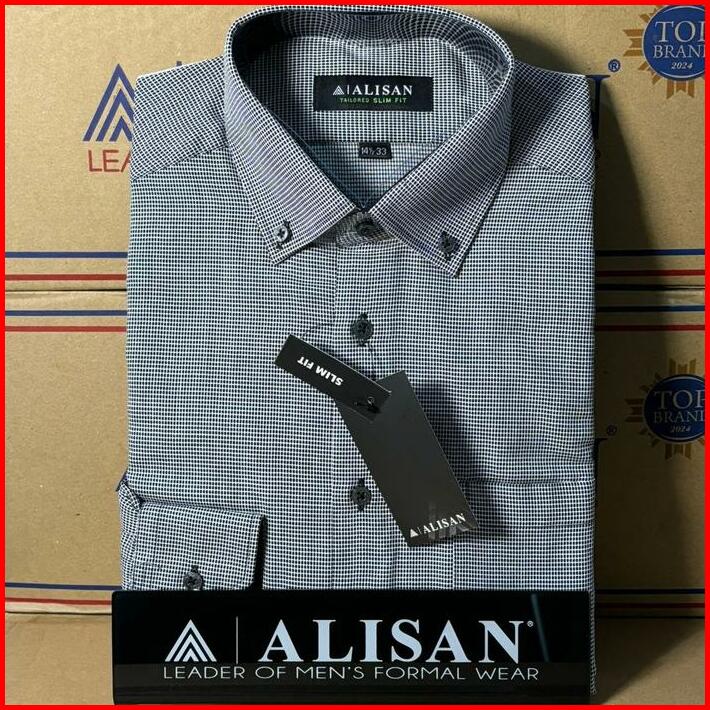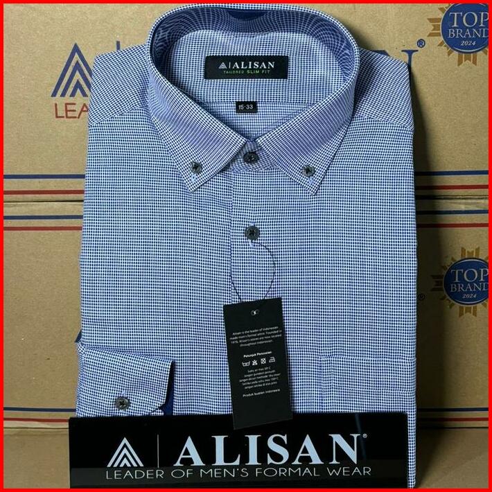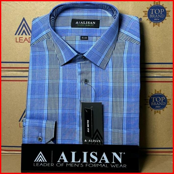 Kemeja Alisan Motif Lengan Panjang Pria Warna Coklat Abu Biru Muda