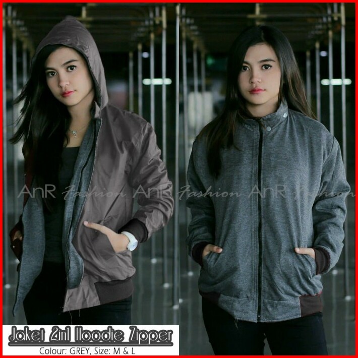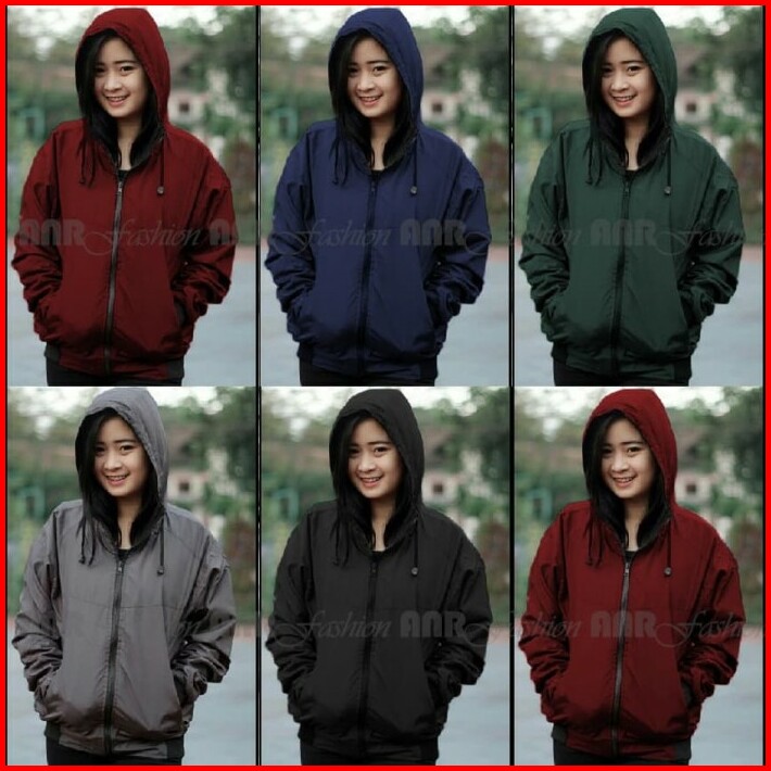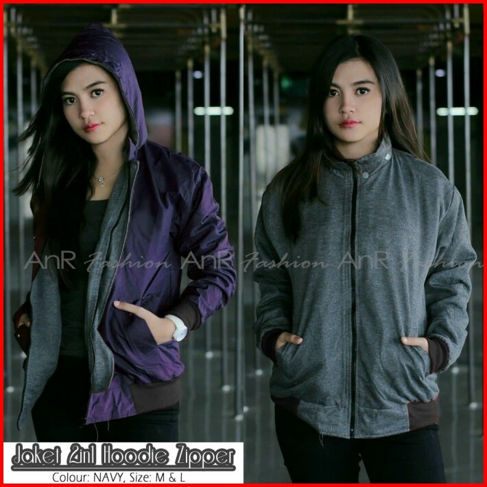 Jaket Bolak Balik 2in1 Bomber Parasut Fleece Hoodie Wanita Murah