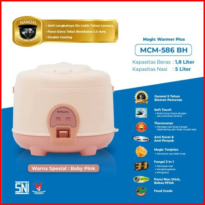 Rice Cooker Miyako Mcm586bh Magic Warmer Magic Com 1.8 Liter Baby Pink Nanoal Berlian Hitam