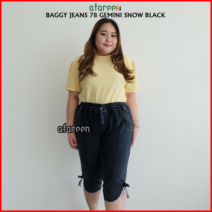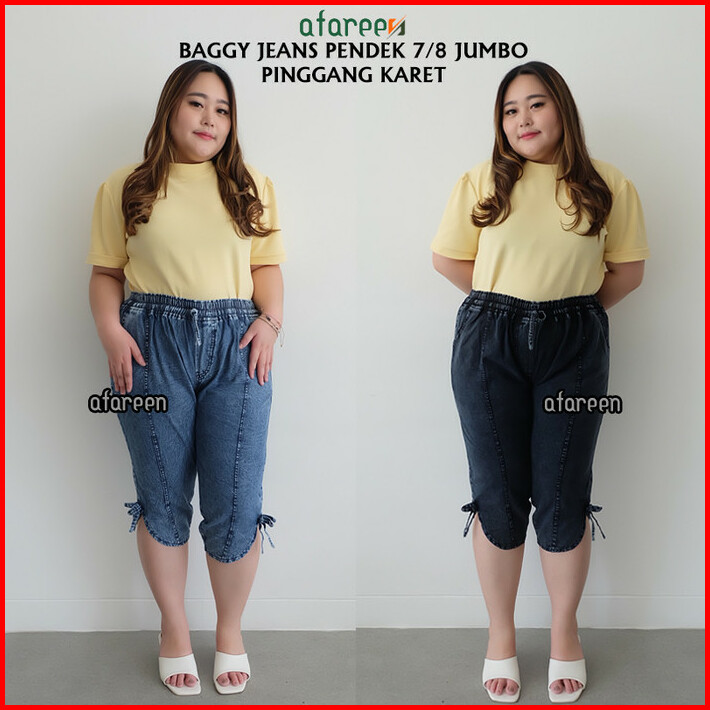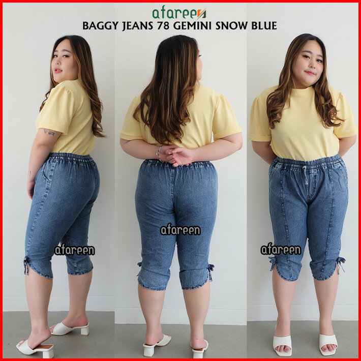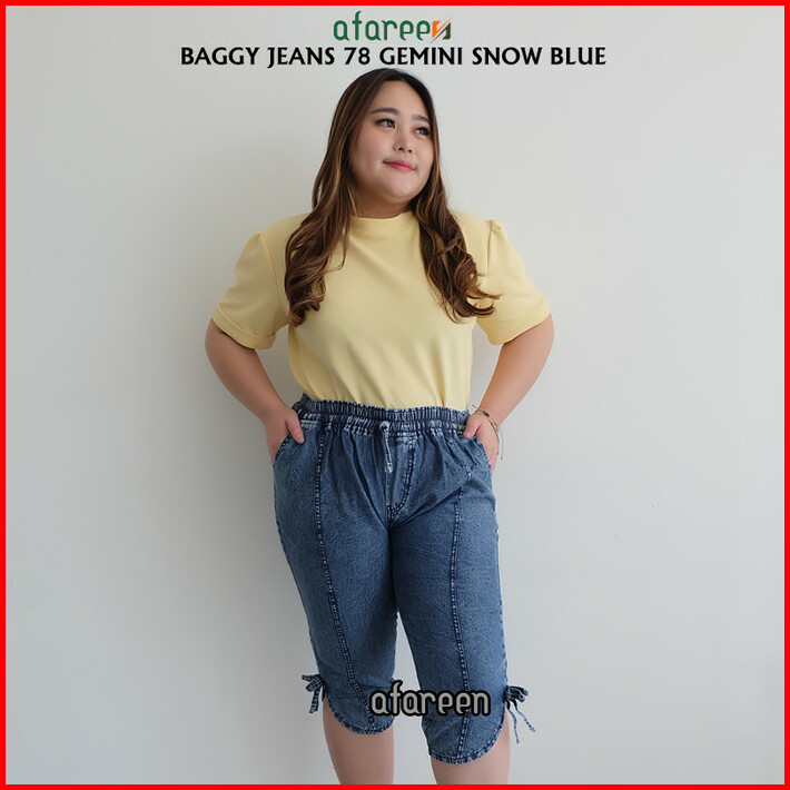 Kulot Jeans 7 8 Pendek Wanita Jumbo Celana Jeans Snow Pinggang Karet