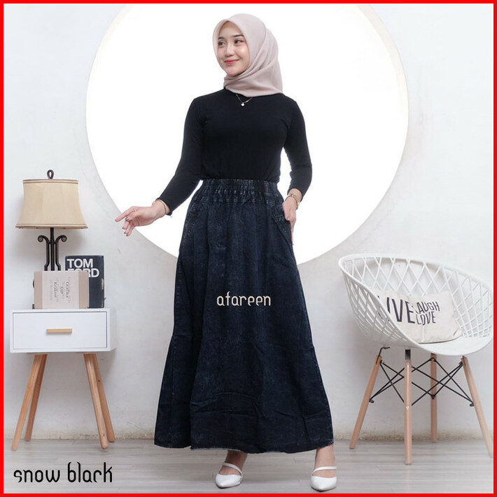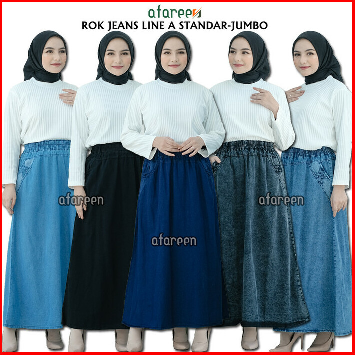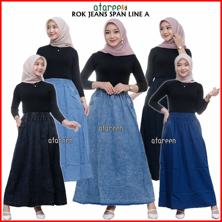 Rok Jeans Panjang Denim Rok Span Rok Skrit Wanita Jumbo