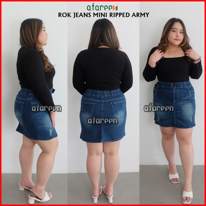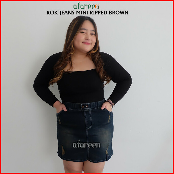 Rok Jeans Mini Ripped Wanita Jumbo Rok Jeans Wanita Rok Midi Denim