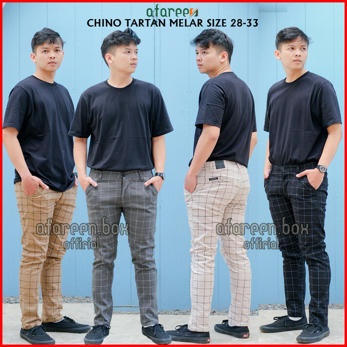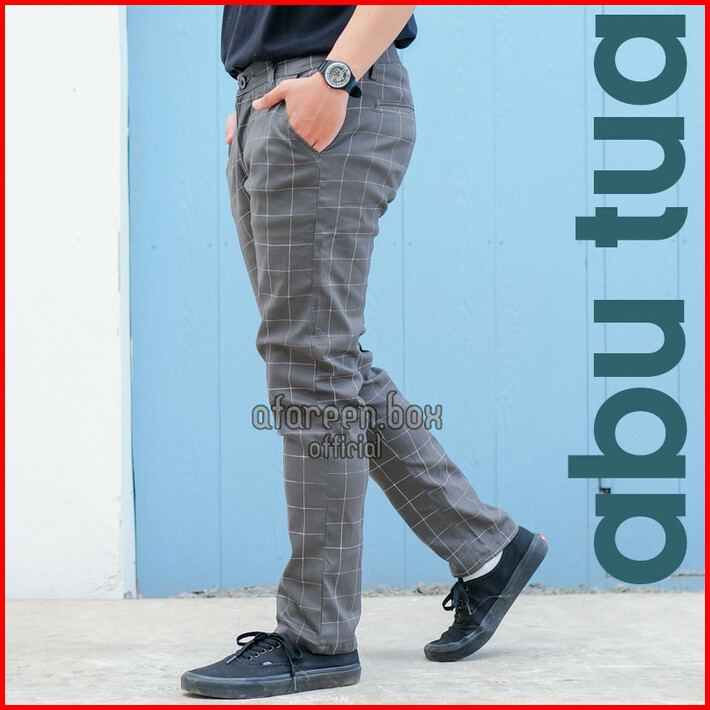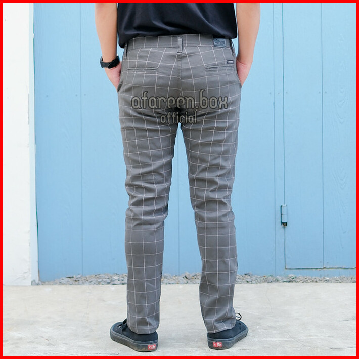 Celana Panjang Pria Motif Kotak Kotak Celana Chino Tartan Slim Fit
